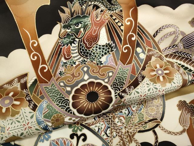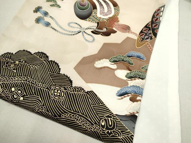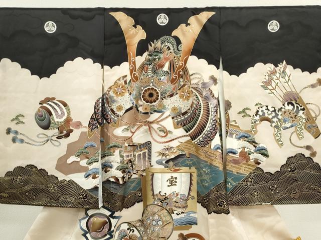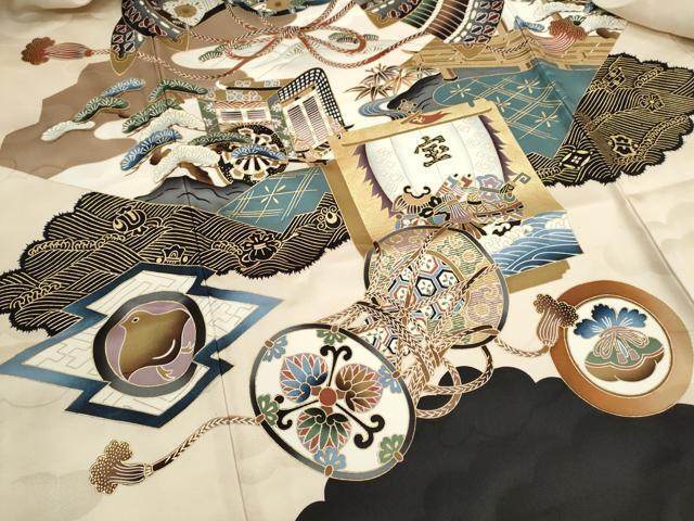 | 産着【表地:正絹・胴裏:化繊、襦袢:化繊・五つ紋】の状態は接写画像のように両袖前・下前・下前おくみ・衿・襦袢・胴裏に薄い汚れがございますが その他特に目立ったシミ汚れなどもなく大変良い状態です。 大変上質な逸品になります。 お安く出品致しますので、是非この機会にいかがでしょうか?