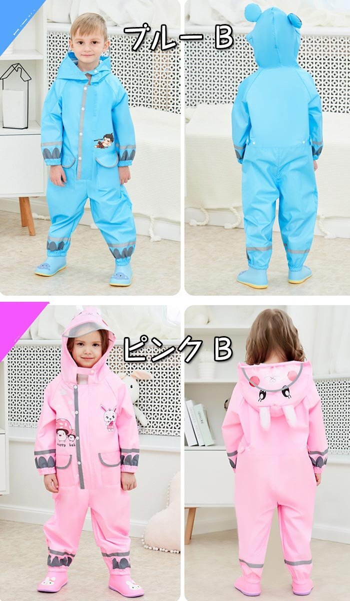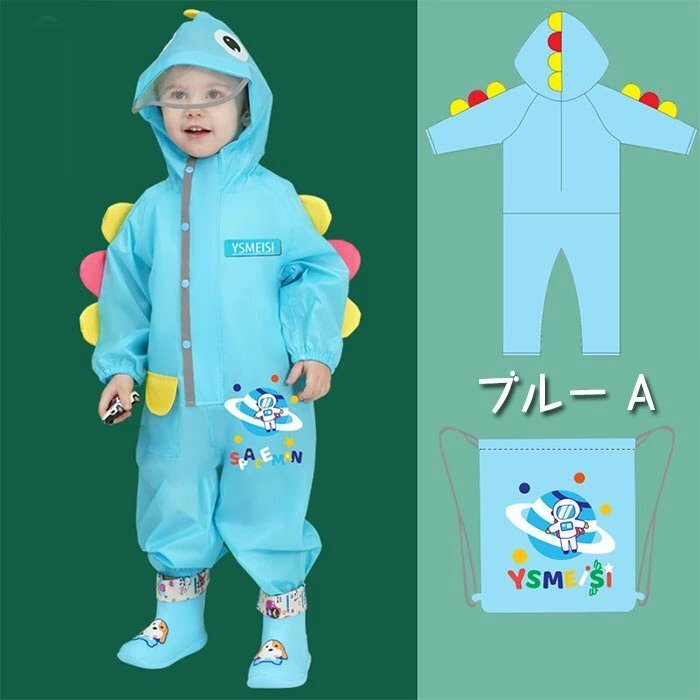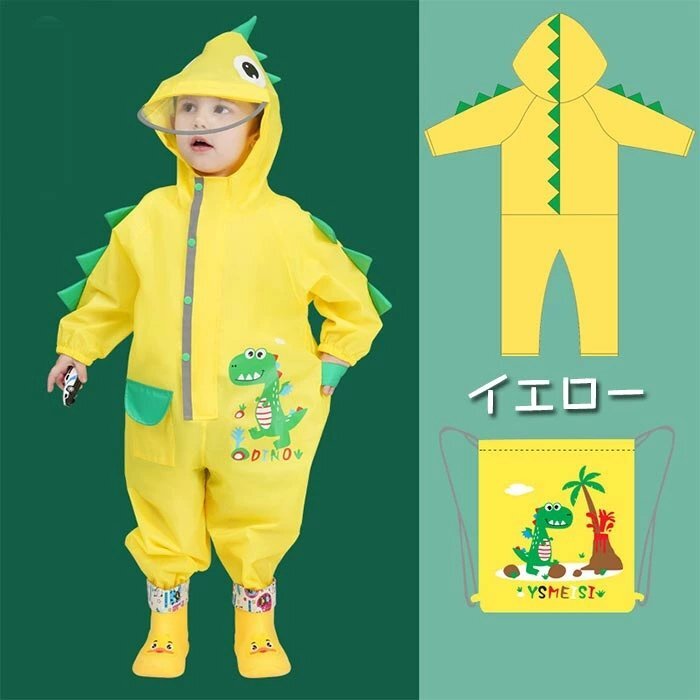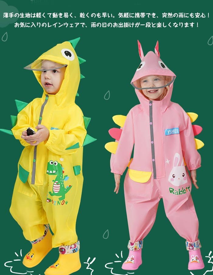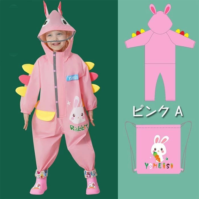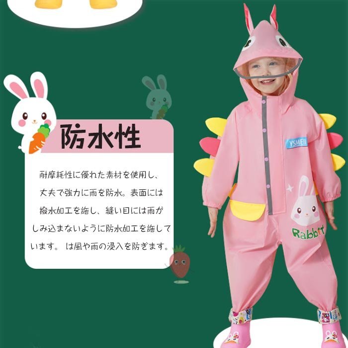 キッズ 一体型レインコート 子供用 レインウェア 男の子 女の子 雨具 収納ポーチ付 恐竜柄 うさぎ柄 レインポンチョ☆6色/S~2XL選択/1点