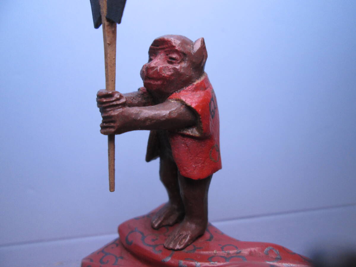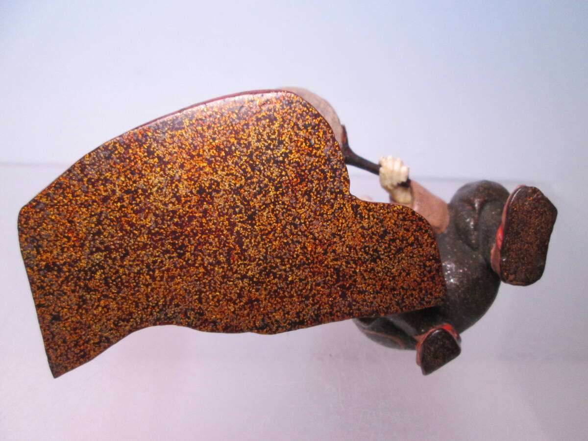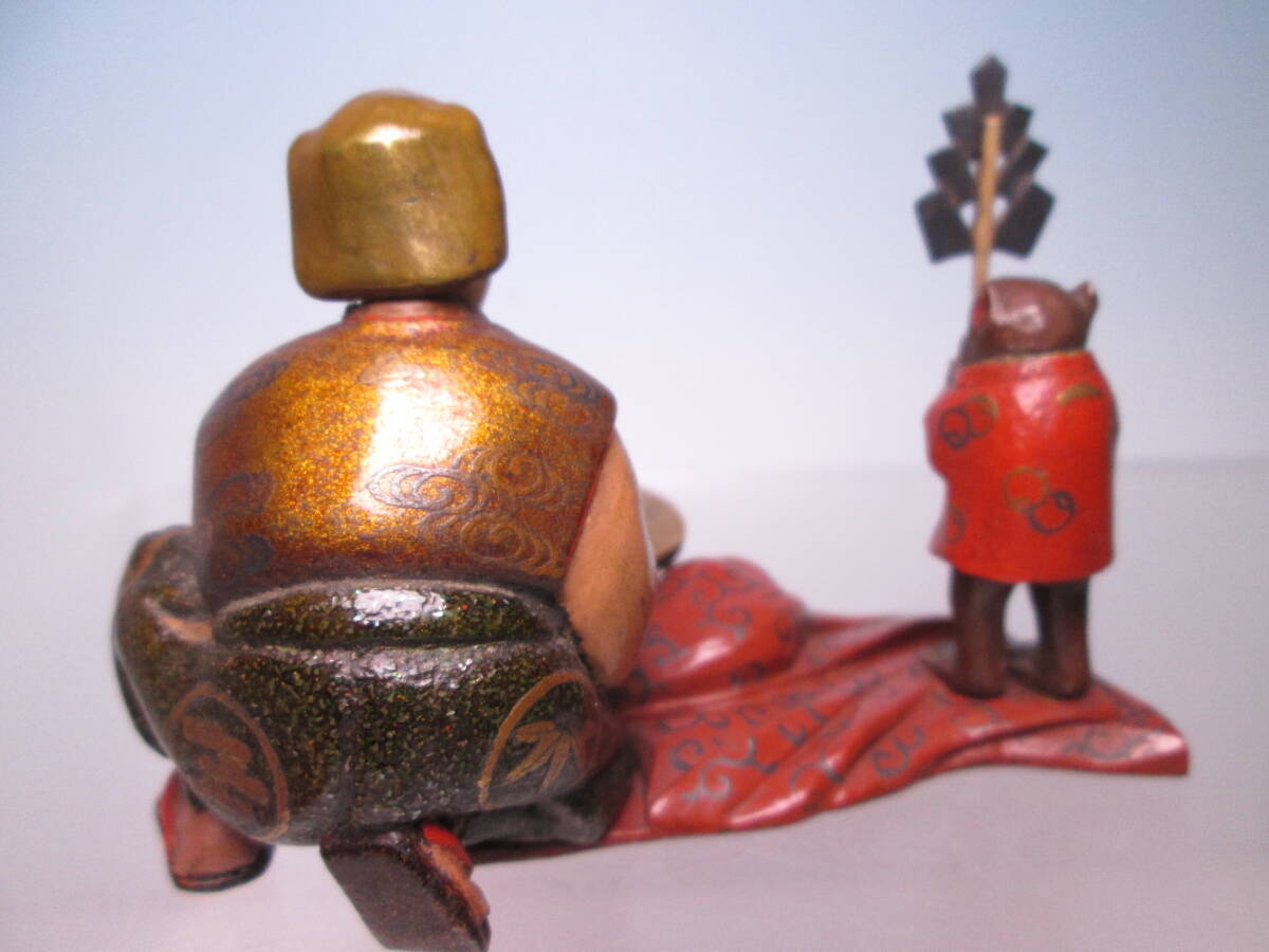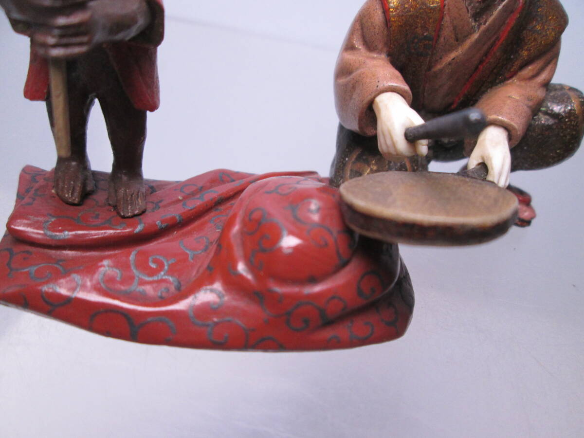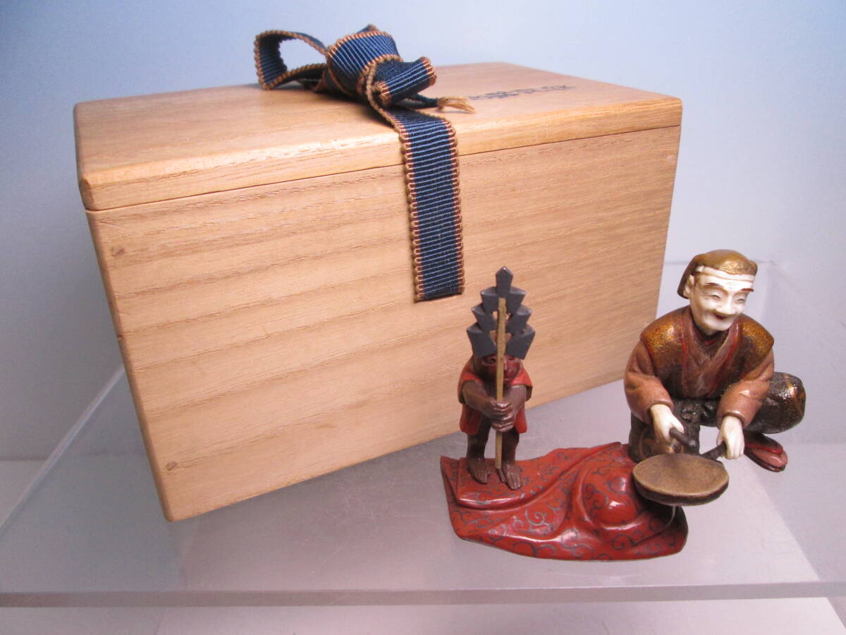 ☆素晴らしい細工 金蒔絵 猿回し図 置物 木箱付 古美術