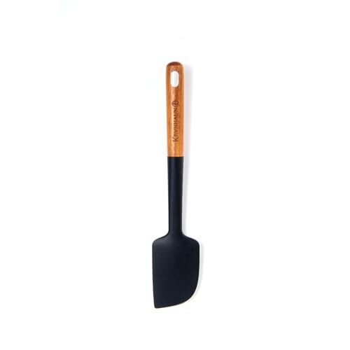 「ケヴンハウン(Kevnhaun) シリコンスパチュラ ゴムヘラ 木製ハンドル ブラック シリコン 耐熱 製菓道具 ヘラ スクレーパー ゴムベラ」▼4905689454495▼(商品説明)スパチュラブラック/長さ26.5cm、幅5.6cm/KDS.4495・Style:スパチュラ・パッケージ個数:1・天然木の持ち手がかわいいシリコン製のゴムヘラ。耐熱性に優れ、柔軟な素材でどんな容器の形にもフィットします。混ぜる、すくう、広げるなど、多用途に活用でき、キッチンの作業効率をアップさせます。・先端がしなるので、ボウルや鍋のカーブに沿って食材を無駄なくすくい取ることが可能。お菓子作りや料理の際に便利です。・食材を混ぜたり、ペーストを伸ばしたり、すくい取ったりと、スパチュラ1本で多彩な用途に対応。お菓子作り、ソース調理、炒め物など、さまざまな場面で大活躍します。・クリームを均一に塗ったり、滑らかに混ぜたり、容器からスムーズにすくい取ることも得意な形状。お料理からお菓子作りまで幅広く活躍するシリコン製スパチュラ。弾力がありしなやかな使い心地で、ボウルや鍋に残ったスープやソースをキレイにかき集めたり、クリームなどを均一に伸ばすのに最適です。