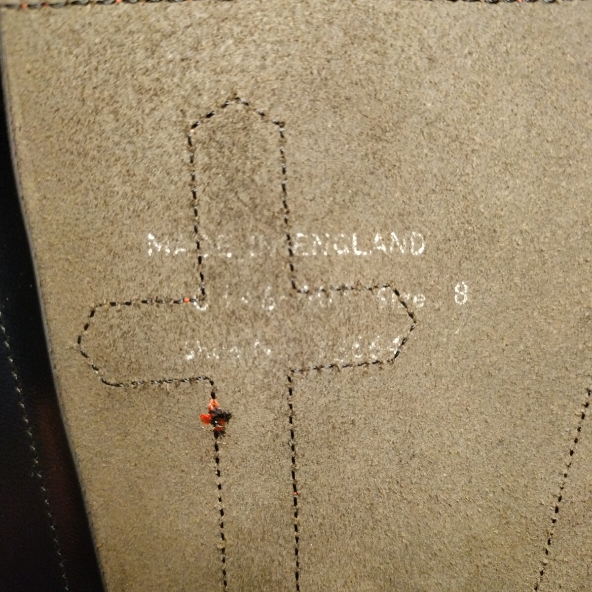 ブラックレザーアッパーにレッドステッチ、サイドにレッドレザークロス、レッドシューレース、スチール無し、GEORGE COX刺繍タグ、高密度エアソール、オリジナル中敷など素晴らしいディテールの一足です。入手困難。