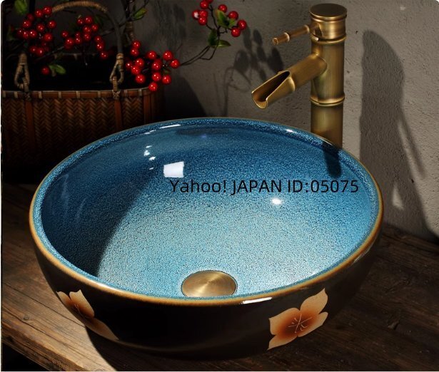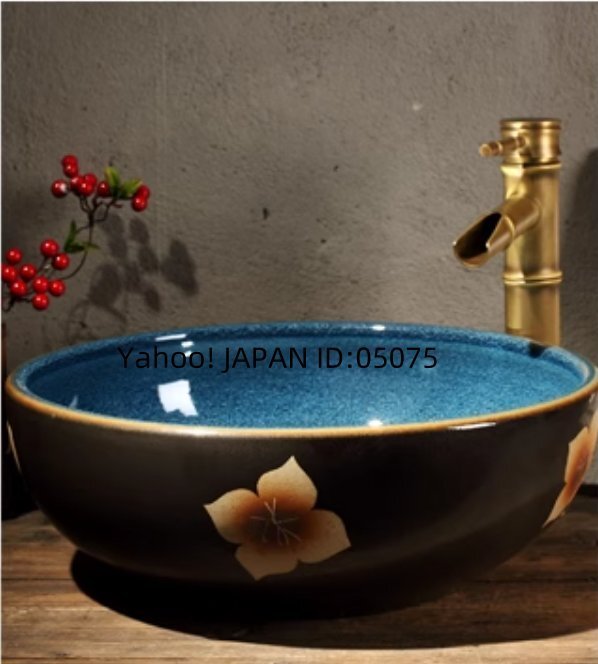 家庭用の陶磁器の台上のボウル、円形の芸術的な洗面ボウル、レトロな洗面台、専用のトイレの手洗い