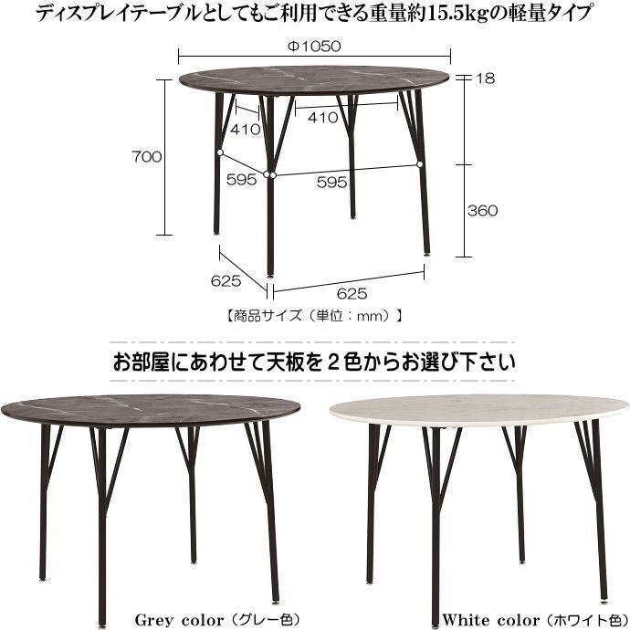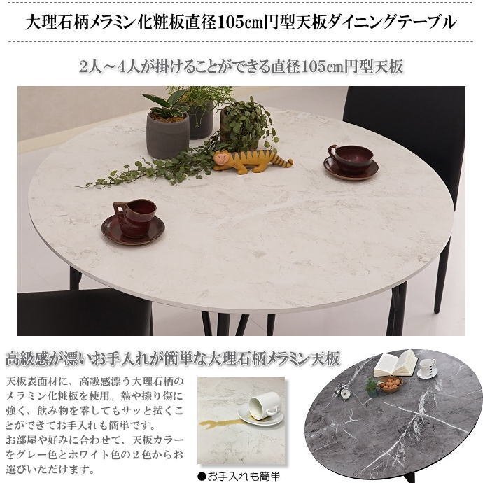 | 【商品名】 | 2人~4人掛け用大理石柄メラミン化粧板直径105cm円型天板ダイニングテーブル | |