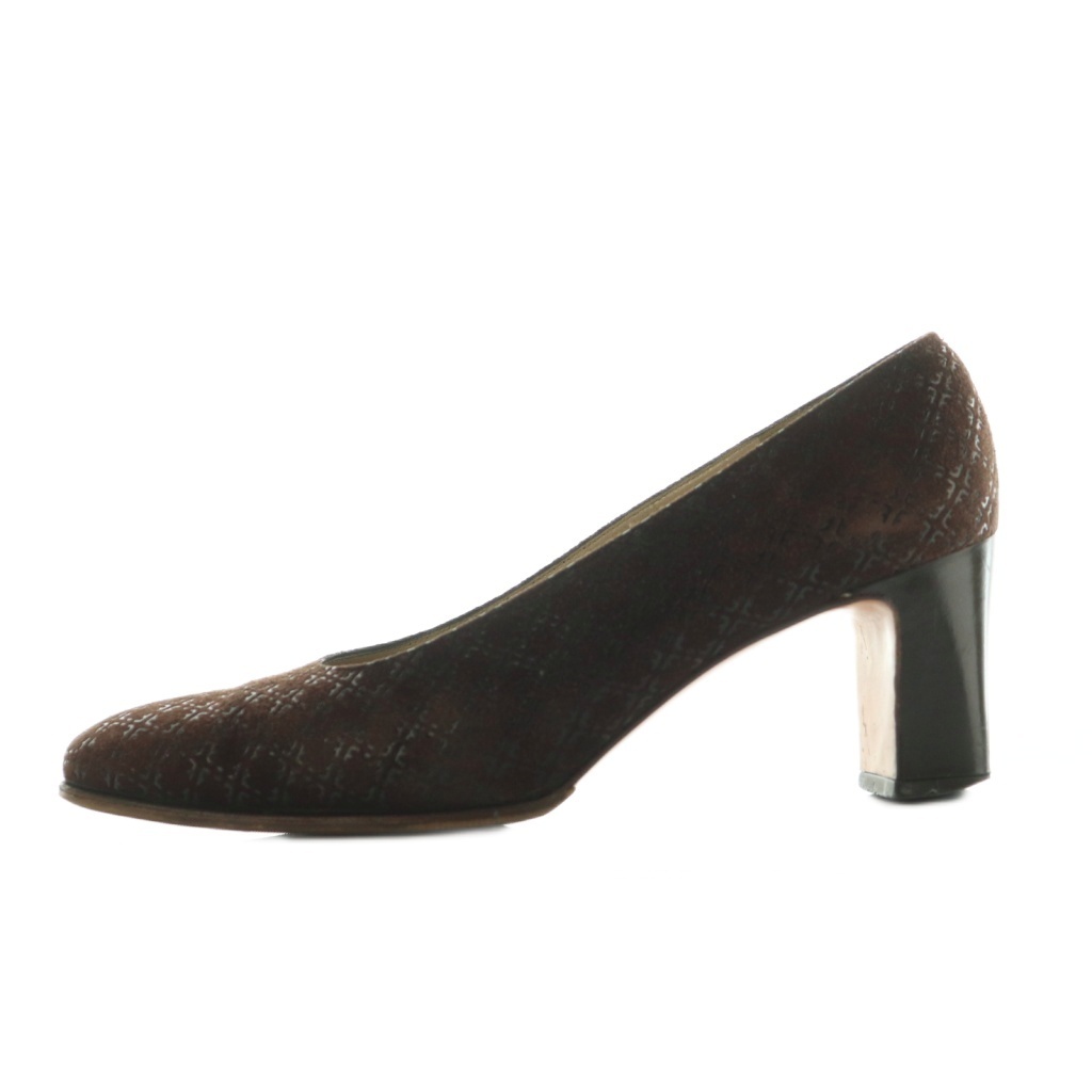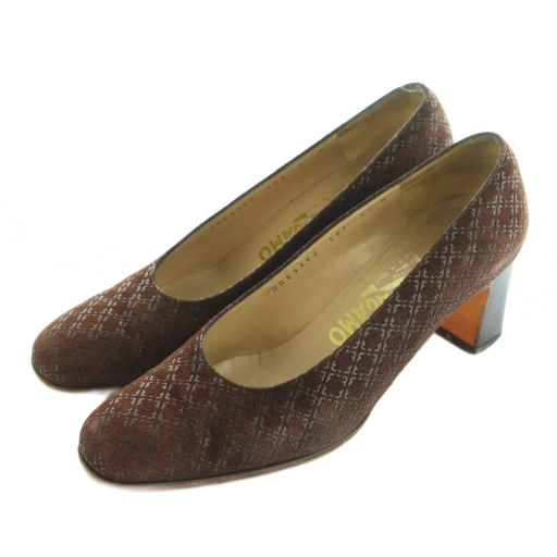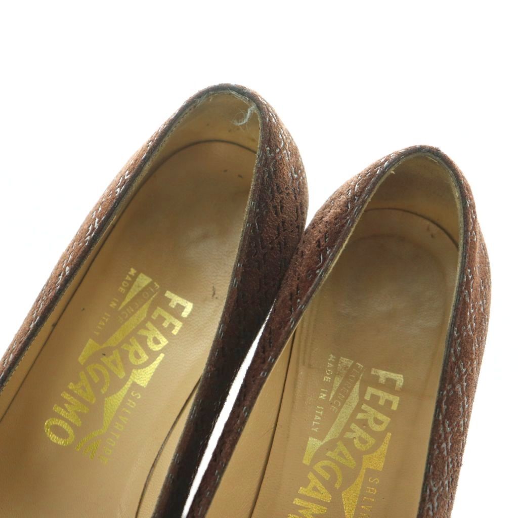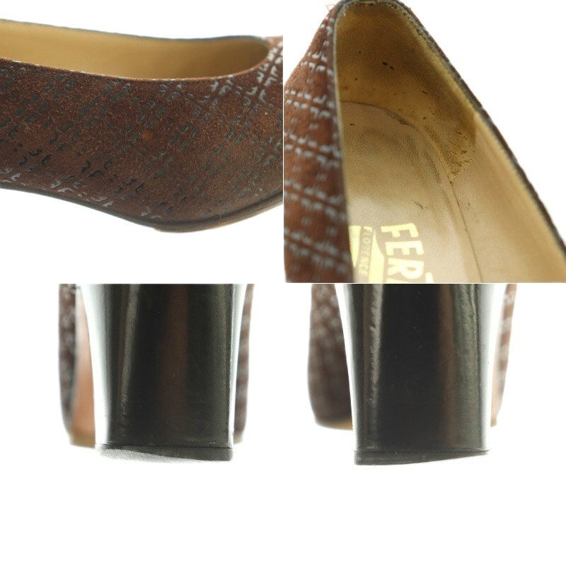 サルヴァトーレフェラガモ Salvatore Ferragamo パンプス スクエアトゥ スエード 総柄 5.5 23.0cm ブラウン 茶色 /MI ■OS レディース