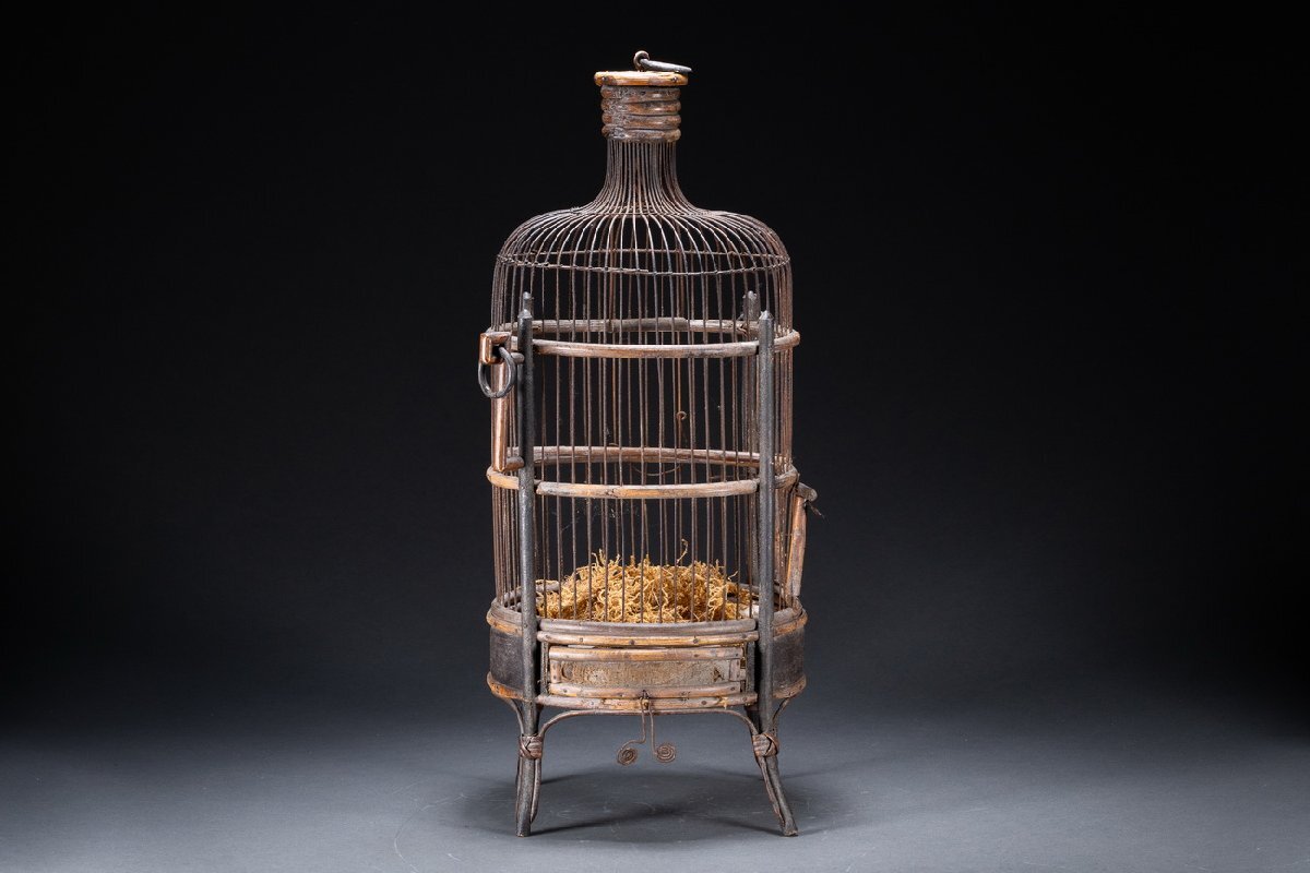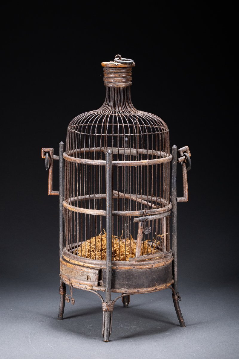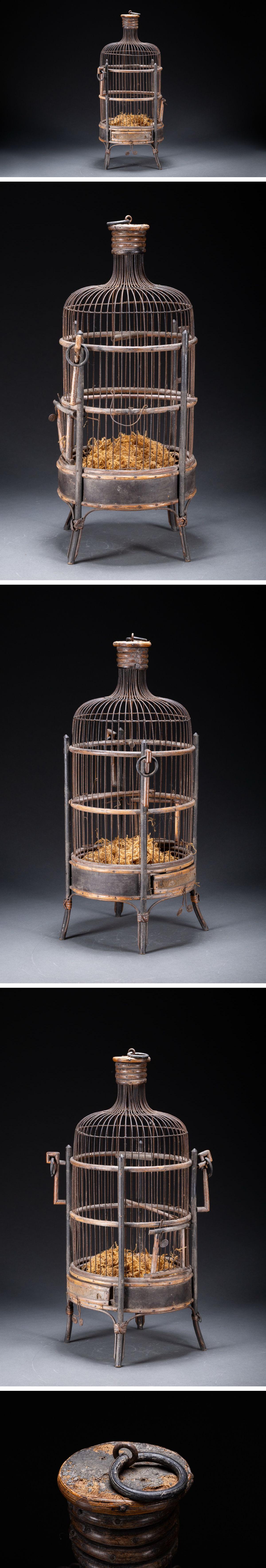 【清】某有名オークション購入 江戸~明治時代 木彫り 鳥籠置物 古置物 古擺件 古美術 時代コレクション7L10-5S05