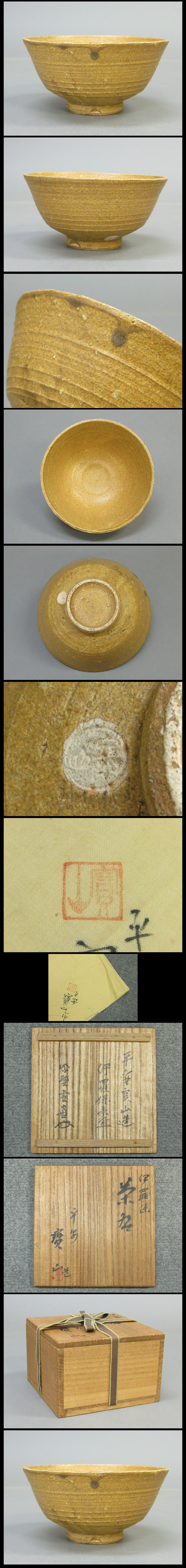 ★平安 寶山/伊羅保 茶碗 共箱 共布 紫聖雪窓(小田雪窓)書付 茶道具