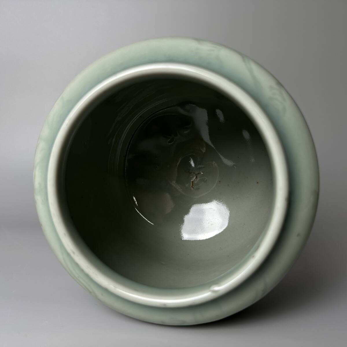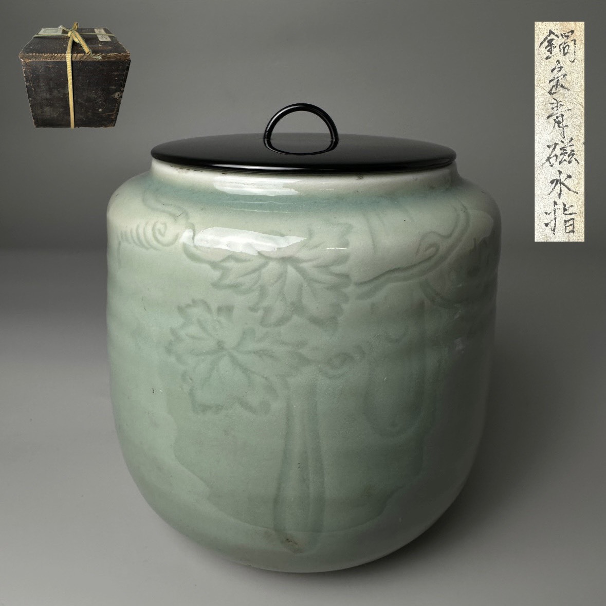コレクター買取品 鍋島青磁 水指 茶道具 蓋物 木箱付 飾物 置物 時代物