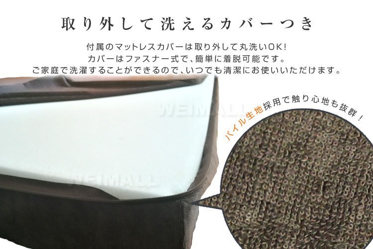 | 一枚取り入れるだけで、じんわりやわらかな夢の寝心地を実現する低反発マットレスです♪ 厚さ4cmあるので、マットレスや敷き布団の上に敷いて使用すると、 包み込まれるような寝心地で、より快適な睡眠を取ることができます。 取り外しやすいL字ファスナー付き洗えるカバーが付属しています! 【商品仕様】 カラー:ブラウン サイズ(約):幅97cm×長さ195cm×厚み4cm(シングルサイズ) 梱包サイズ(約):(約)52×26×26cm 重量(約):(約)3.2kg 素材:低反発ウレタン(密度40kg/m3) 、パイル生地 他 ※耐熱仕様ではございませんので、電気毛布との併用はおやめください。 (マットレス シングル セミダブル ダブル 高反発 低反発 高反発マットレス 低反発マットレス 4cm 8cm 10cm シングル 高反発マット 低反発マット マット ベットマット ベッド 敷き布団 洗える カバー 寝具 人気 おすすめ ) |