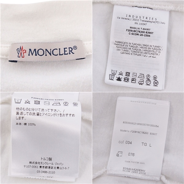 | 美品 モンクレール MONCLER Tシャツ 2020 カットソー ショートスリーブ 半袖 コットン トップス メンズ L ホワイト |