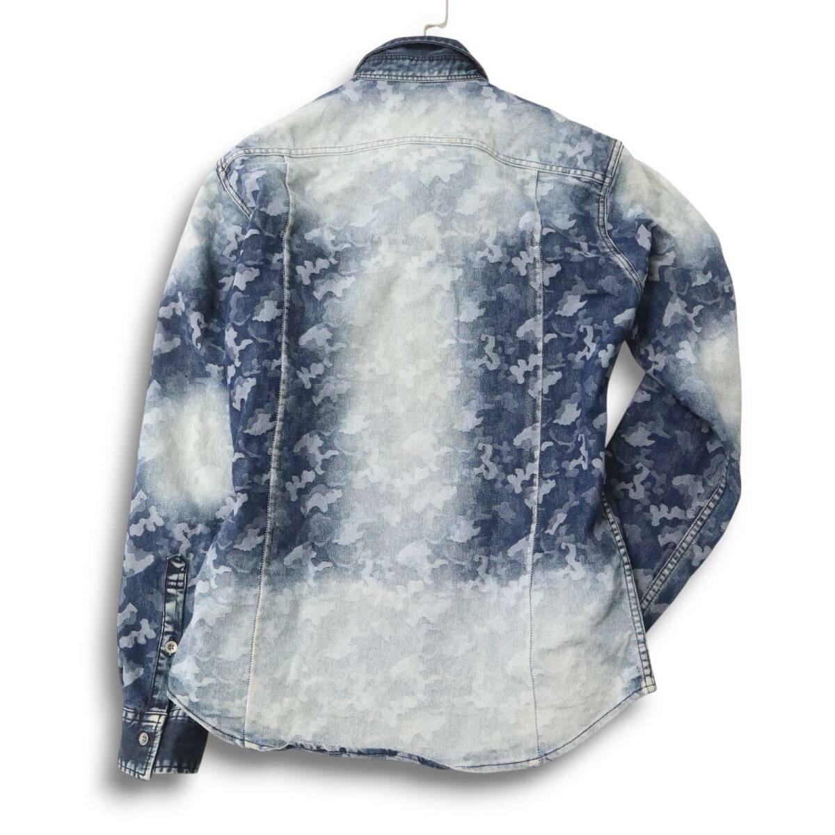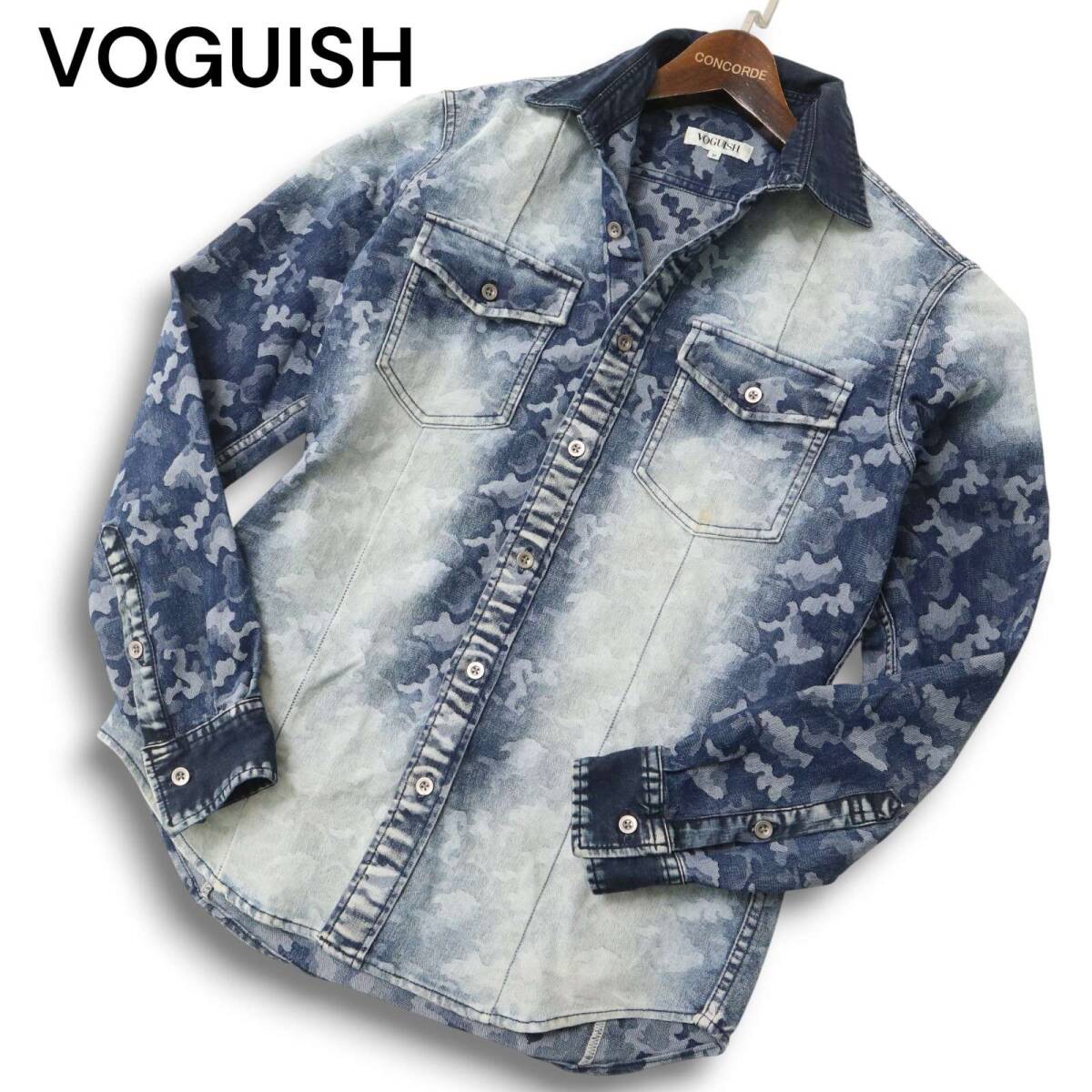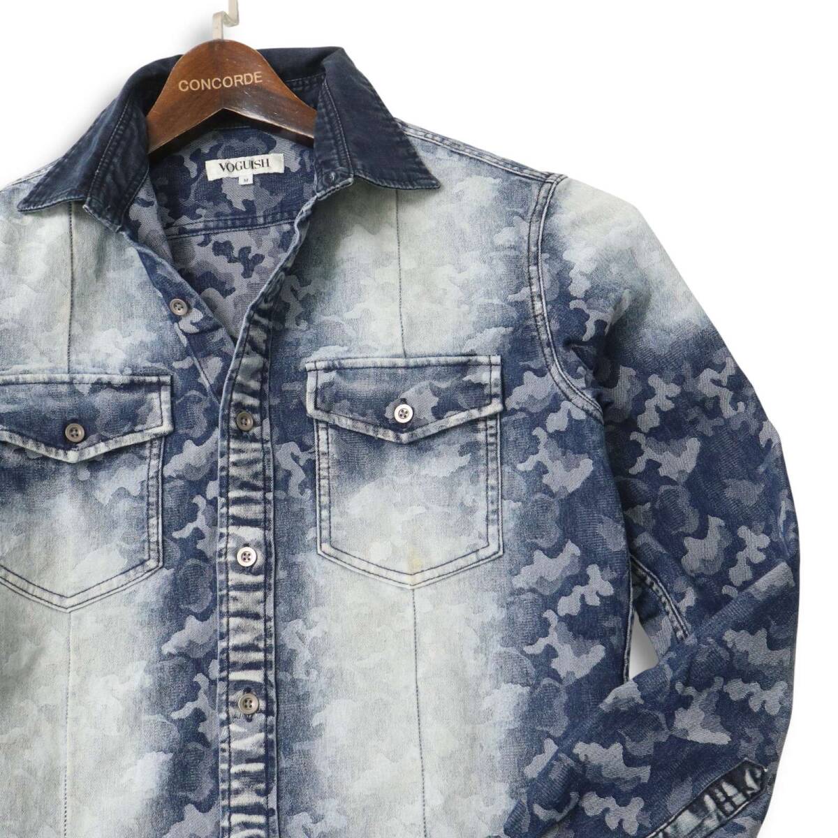 VOGUISH ヴォーギッシュ ルパート 通年 【迷彩 カモフラ 総柄】 加工★ 長袖 デニム ワーク シャツ Sz.M メンズ