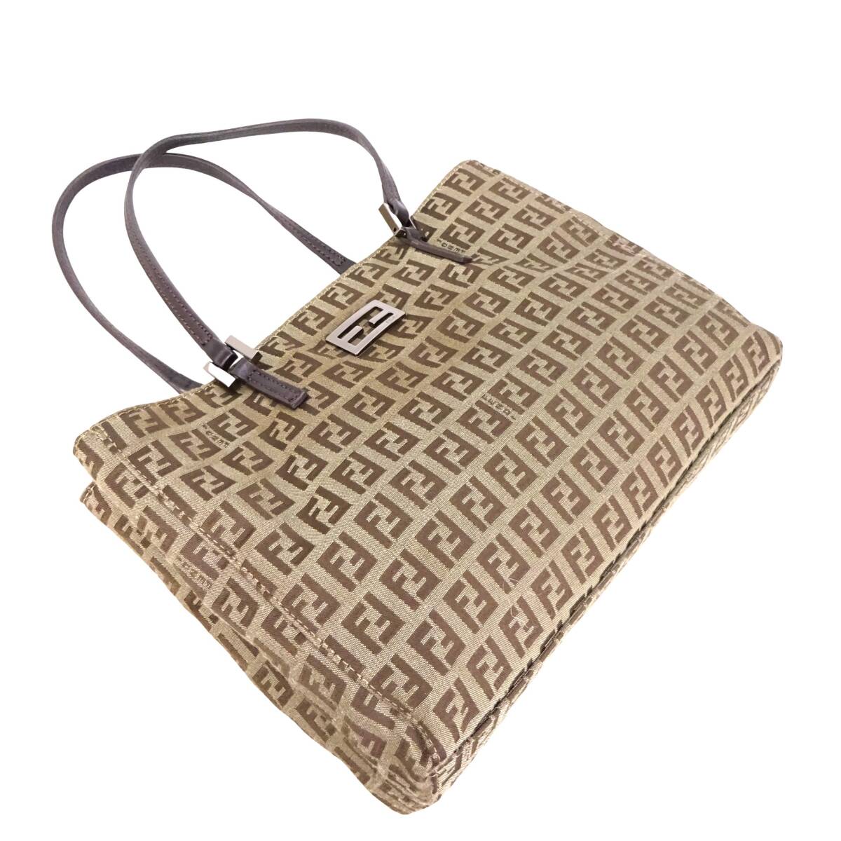 本物■フェンディ■ズッカ ズッキーノ キャンバス ベージュ ブラウン レザー スモール トートバッグ ハンドバッグ /938651