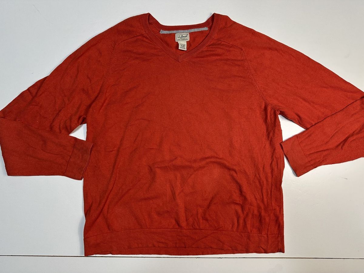 ●US USED 超ビッグサイズ US古着 L.L.Bean エルエルビーン 90s 90年代 ニット セーター Vネック コットンカシミア オレンジ【2XL】