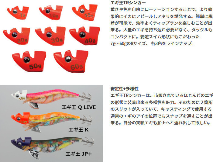 「ティップランエギ」も「ショアエギ」もどちらのエギにも装着できるシンカーです。