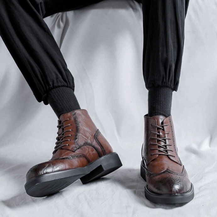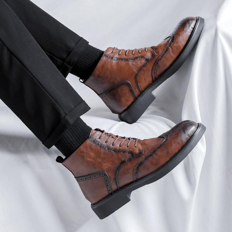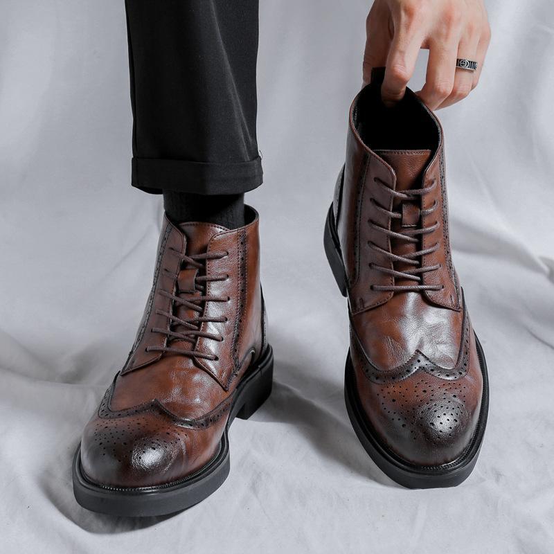 ブーツ メンズ ハイカット 本革 サイド ゴア ブーツ ミリタリー ロング 靴 革靴 牛革 床革 防滑ソール シューズ JHB0191 ブラウン 25.5cm