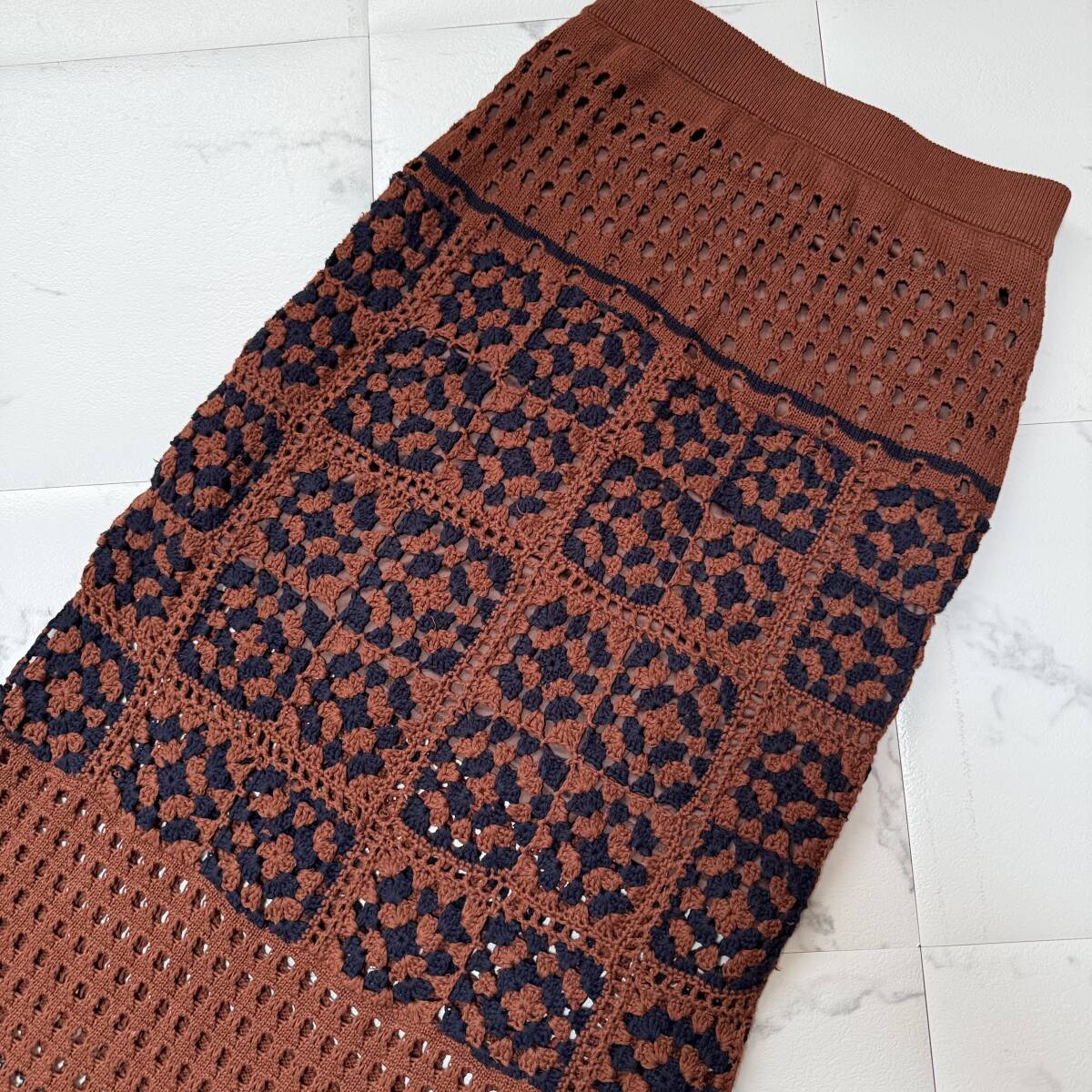 | ★ 商品名 ★ TENTO テント クロシェ編みスカート 手編み かぎ針編み ニット ロングスカート ブラウン定価19.800円 美品 ★ |