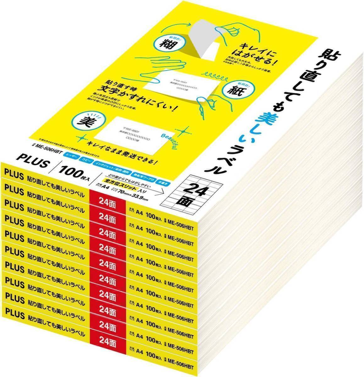 送料無料 プラス マルチラベル シール 24面100枚×10パック 合計1000シート(24000枚) 貼り直しても美しいマルチラベル 1000枚 ME-506HBT
