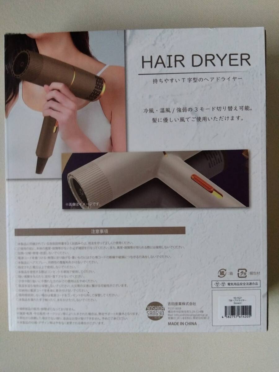 ★T字ヘアードライヤー<ブラウン>  です。持ちやすいT字型のヘアドライヤー、冷風・温風/強弱の3モード切り替え可能。髪に優しい風でご使用いただけます。未開封新品・美品のアミューズメント品です。最後の一品です。