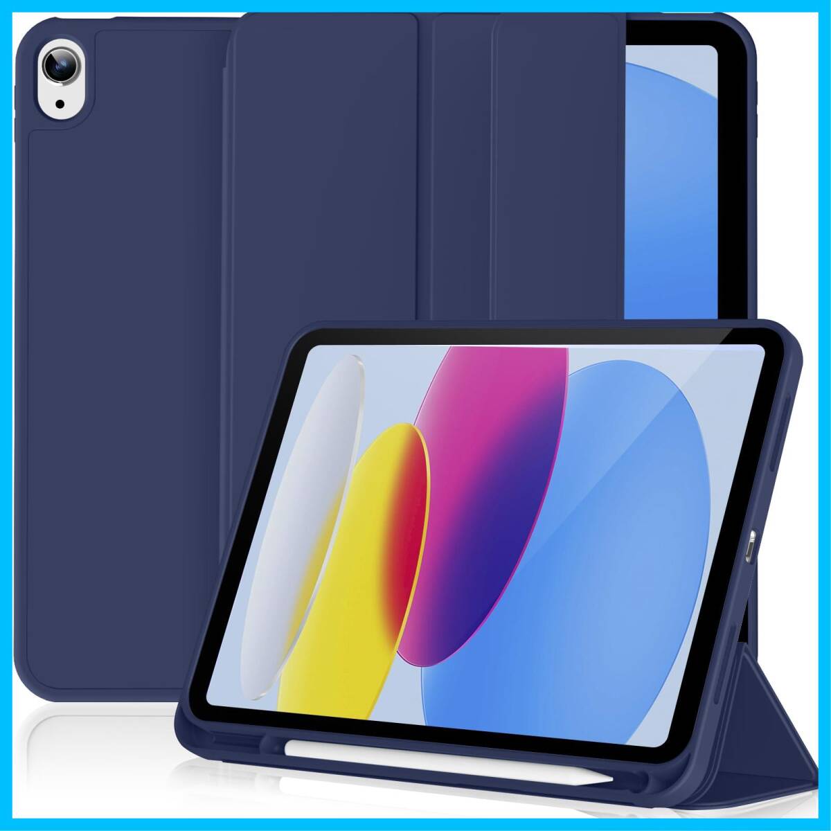 Lsmmpoba ipad 11世代 10世代 ケース (A16) 2025 2022 11/10.9インチ ipad 第10世代 ケース 三つ折りスタンド ペンシル収納 ホルダー付き スリープ機能 軽量 薄型 傷つけ防止 PU合成レザー ネービーブルー