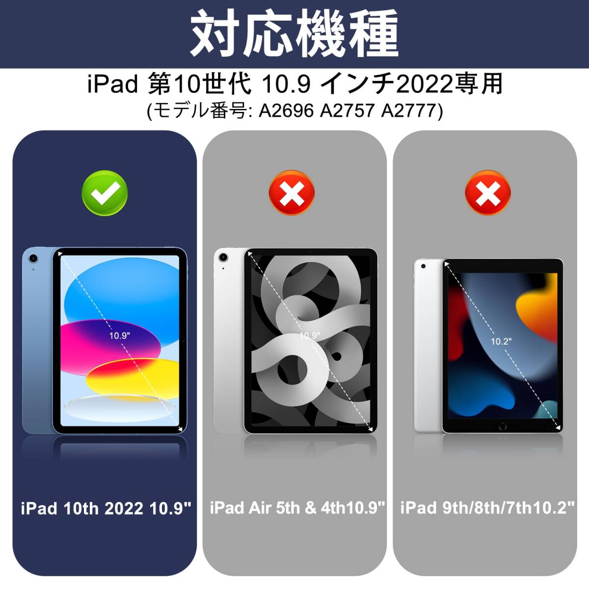 【対応機種】 iPad 11世代 (A16) 11インチ 2025、iPad 10世代 10.9インチ 2022専用です(モデル番号: A2696/A2757/A2777)ご注意:iPadの他のモデルには対応していません。