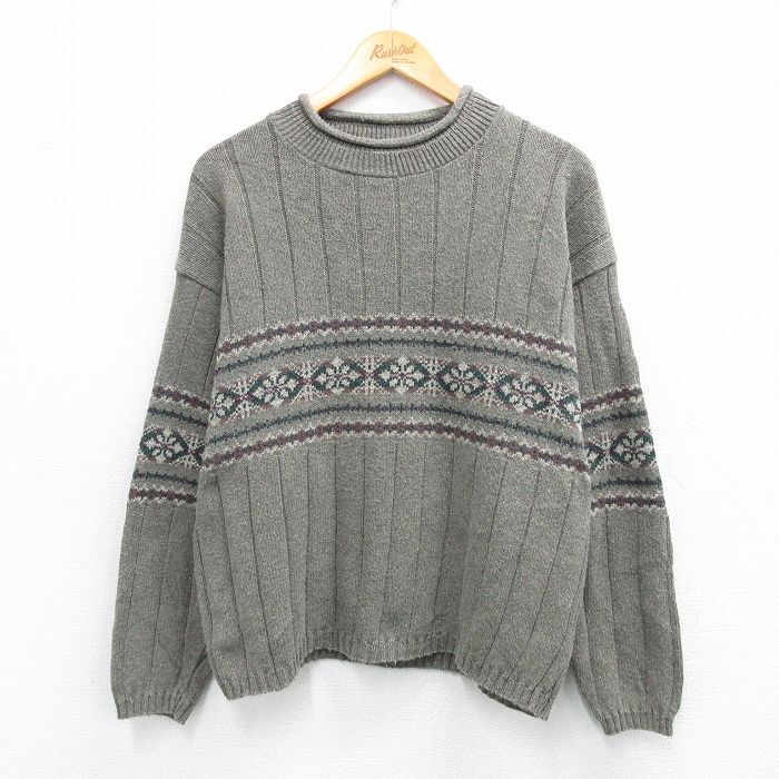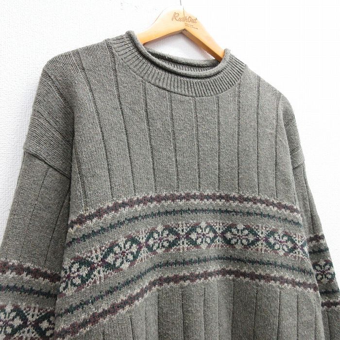 【商品名】 古着 エディーバウアー 長袖 セーター レディース 90年代 90s クルーネック USA製 緑系