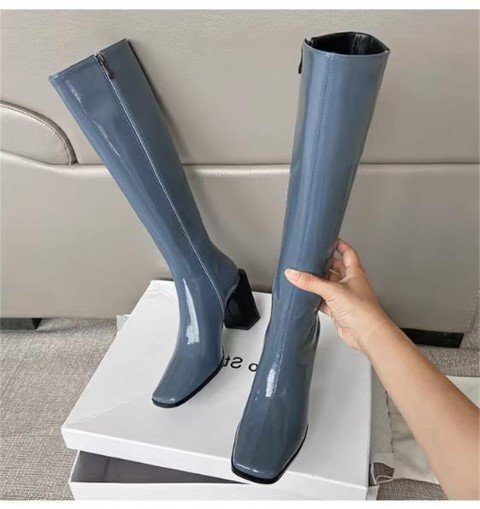 ロングブーツ ライダーズブーツ ヒール かっこいい スクエアトゥ お出かけ レディースシューズ 【35】22.5cm ブルー