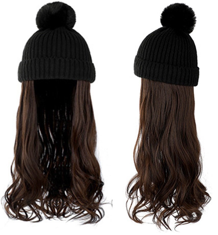 ウィッグ付きニット帽 ニット帽/ブラック ウィッグカラー/I ロングヘアー カール イメチェン 髪色チェンジ コスプレ n467
