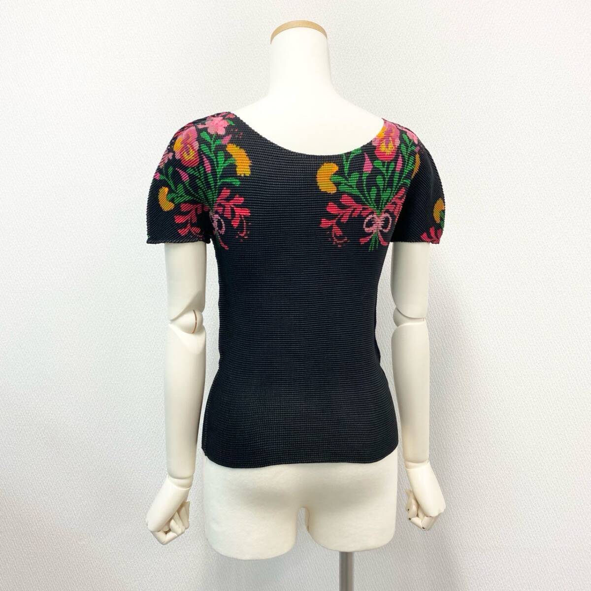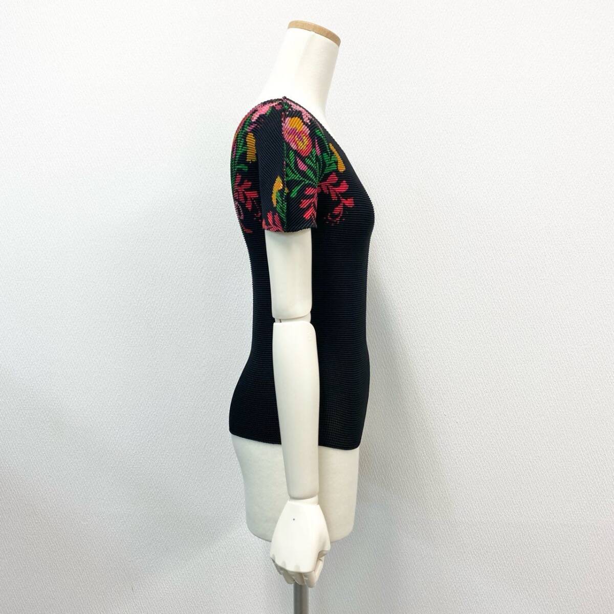| スタッフ商品コメント | ISSEY MIYAKE me(イッセイミヤケ ミー)のカットソー。ブラックベースにピンク・イエロー・グリーンの花柄刺繍風デザインが映える華やかな一枚です。ストレッチ素材で、身体にやさしくフィットしながらも軽快な着心地。花柄が印象的で、シンプルなボトムスと合わせるだけでモード感のあるスタイルに仕上がります。 |