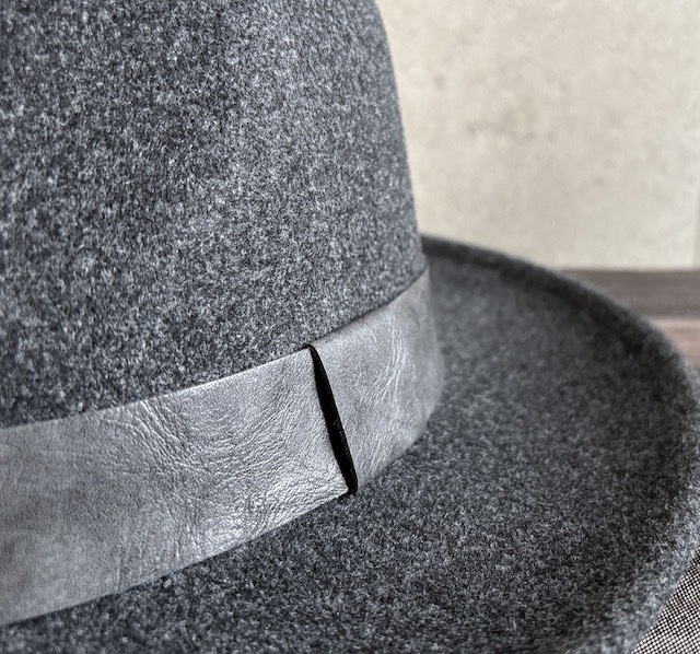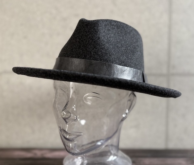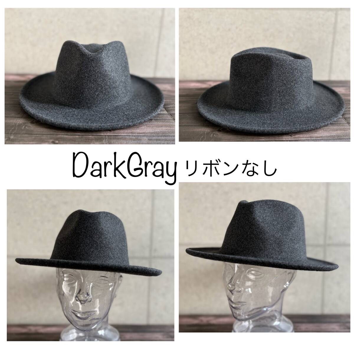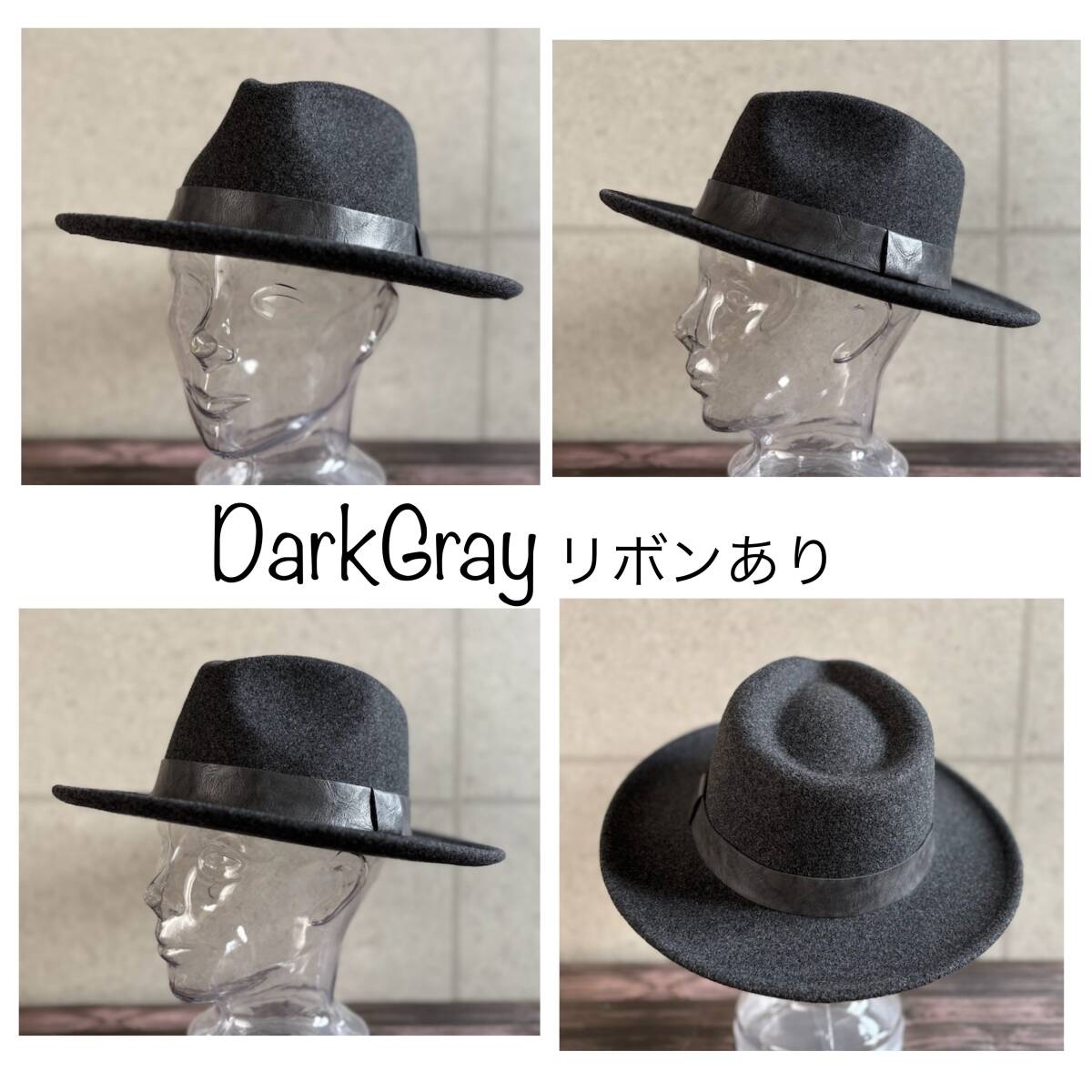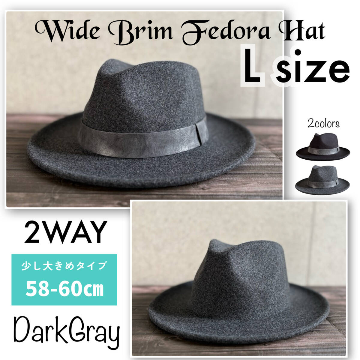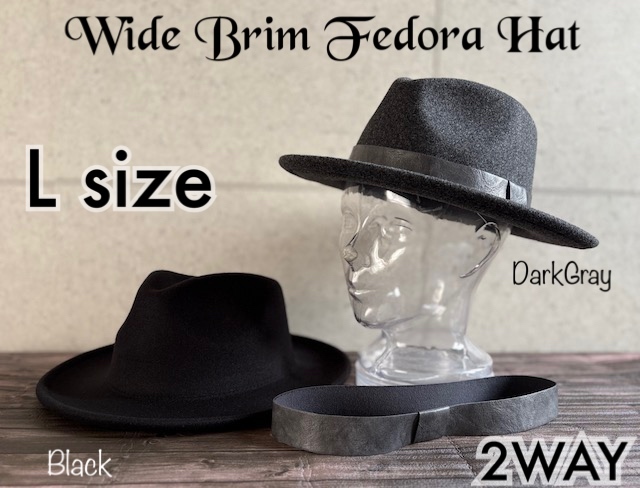 帽子 つば広 フェドラ ハット 中折れハット クラックレザー帯 2WAY 取り外し ポリフェルト 秋 冬 60cm サイズ調整 無地 メンズ 男女兼用 G