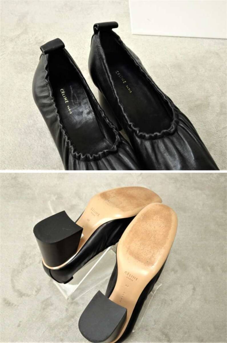 極美品【CELINE |セリーヌ】定価9万7千 soft Ballerina pumps ソフトバレリーナ パンプス チャンキーヒール ラムスキン 37 pump Ballerina