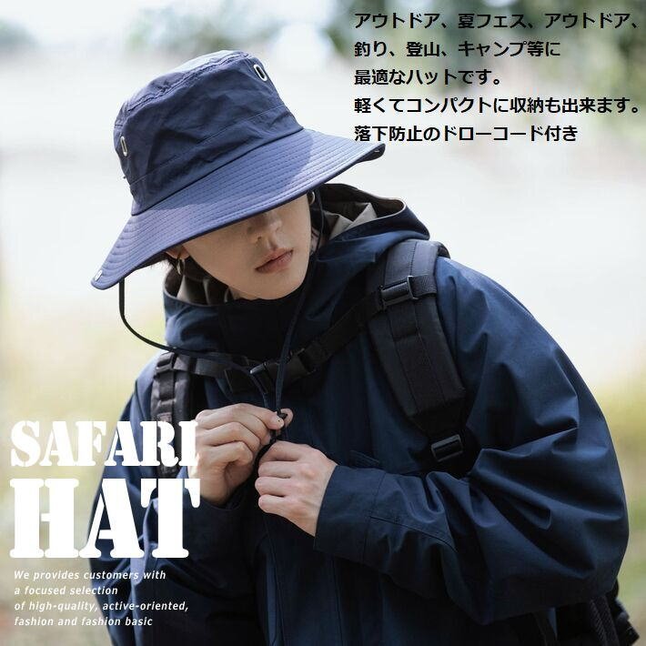 サファリハット ハット アドベンチャーハット アウトドア キャンプ 釣り 日焼け止め 速乾 通気性 7987006 ネイビー 新品 1円 スタート