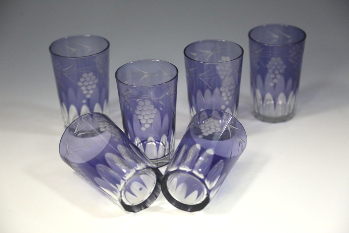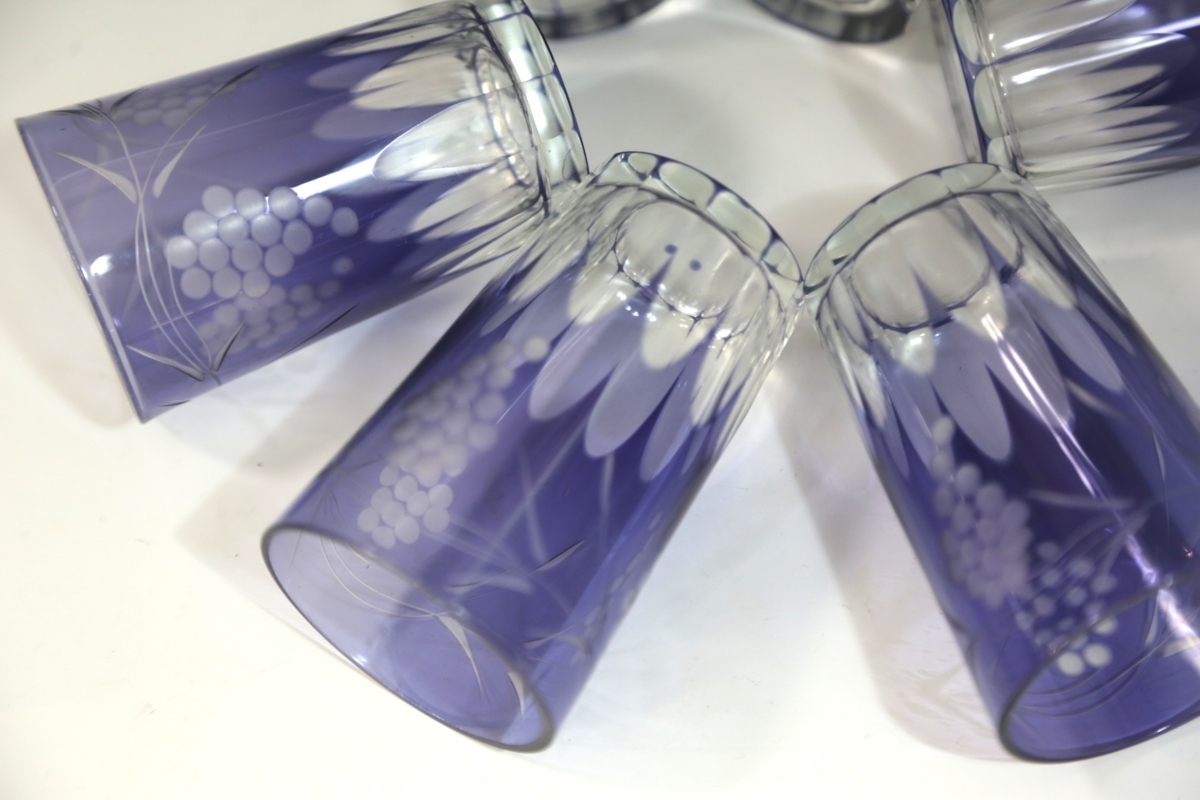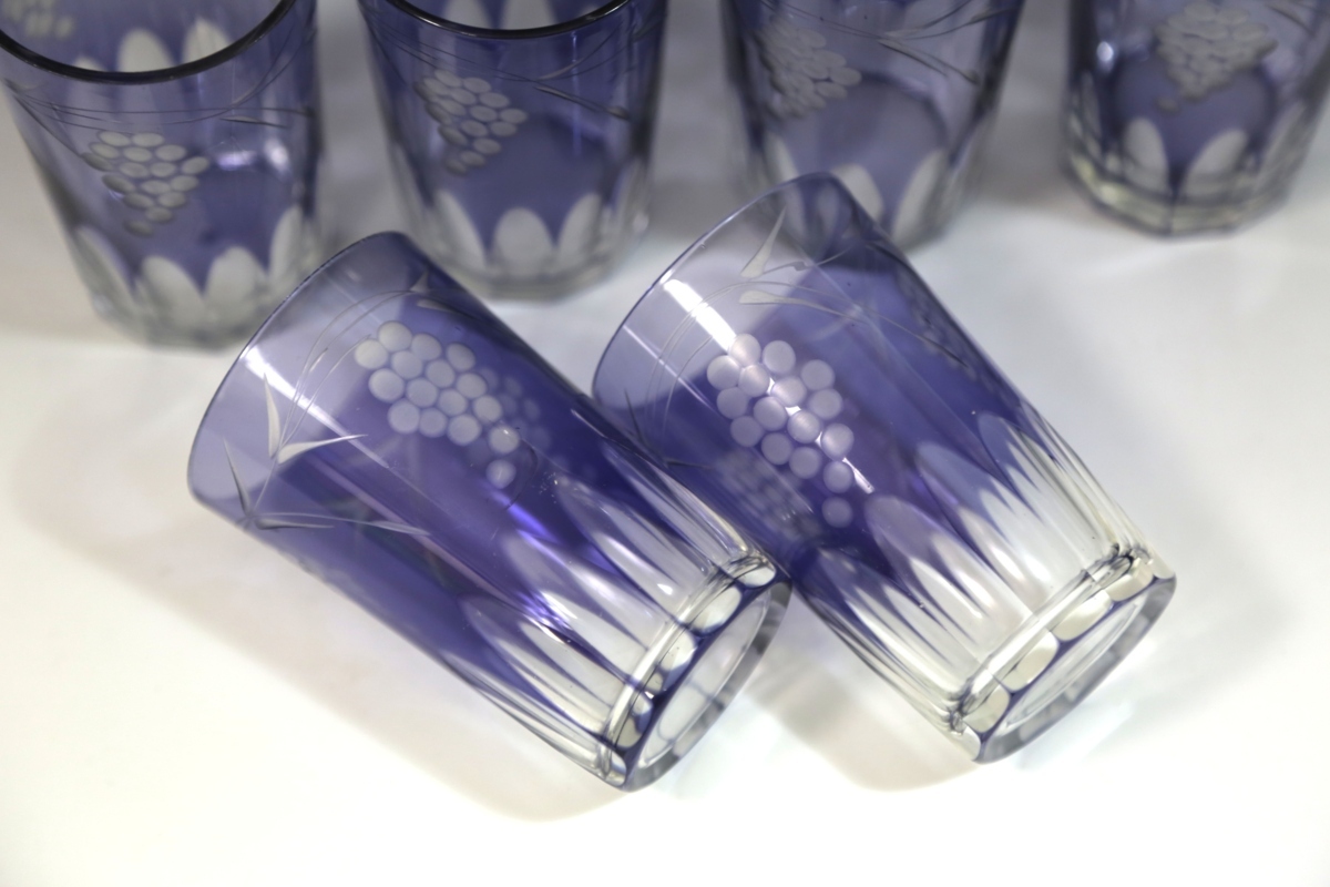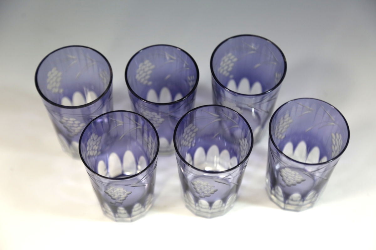 ★★★ 大正期 葡萄模様 カットガラス 切子ガラス 6客 ★★★ 55