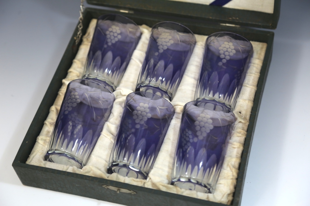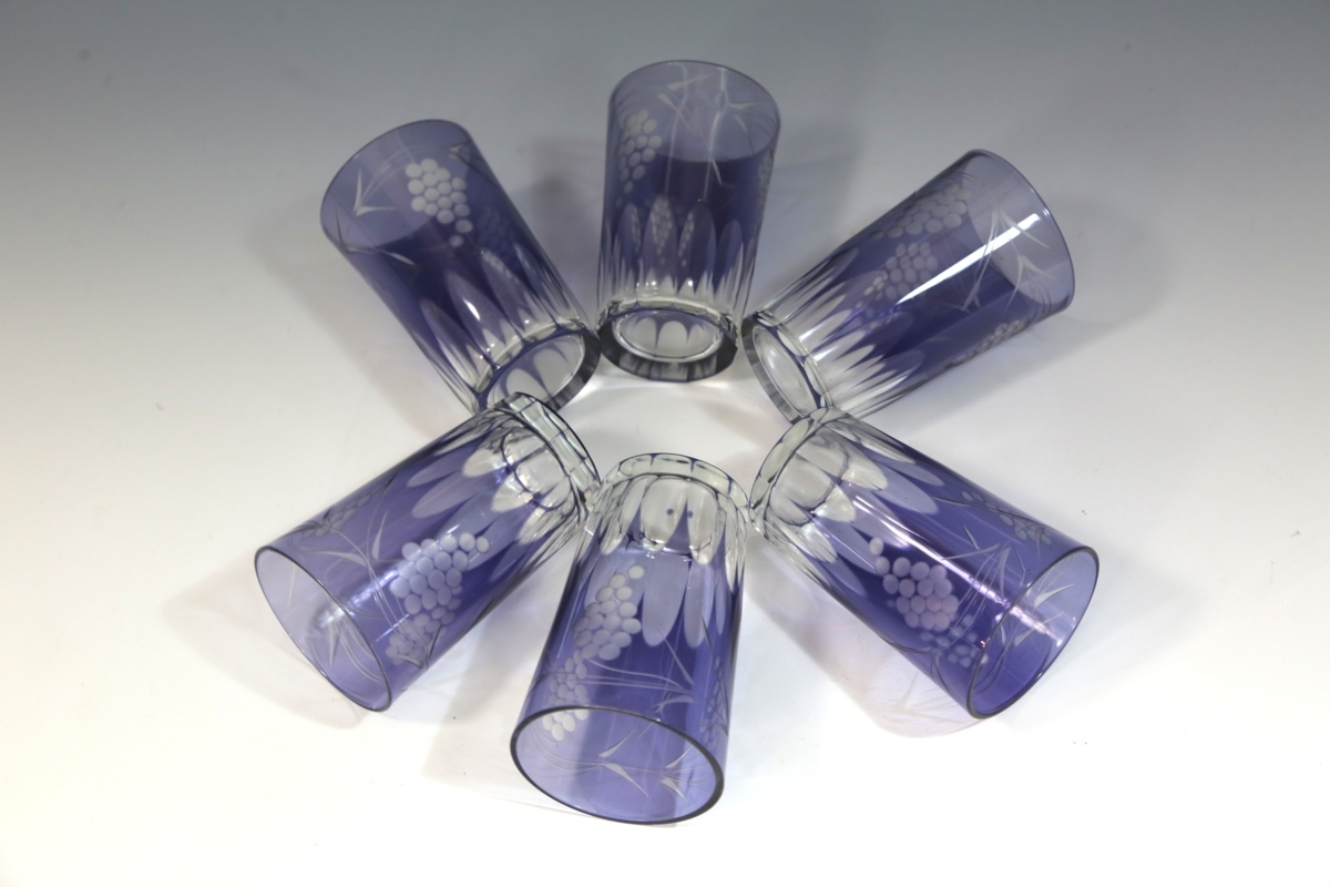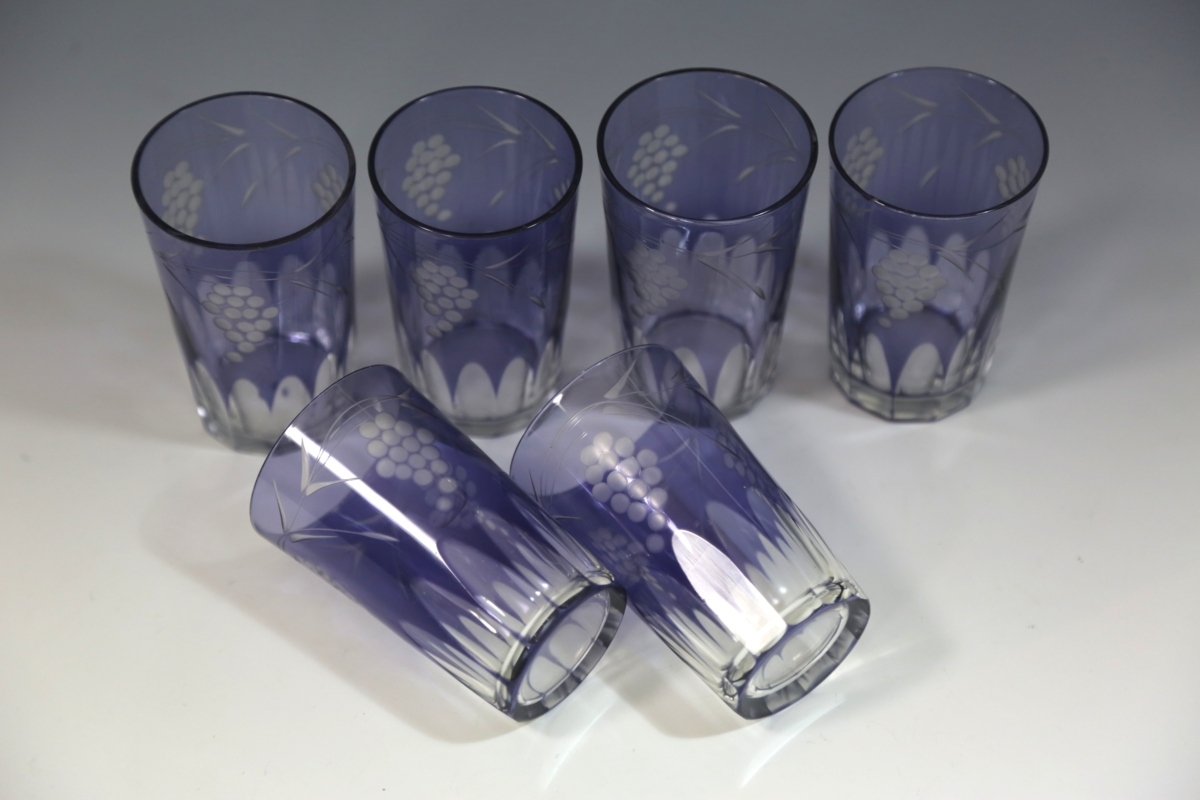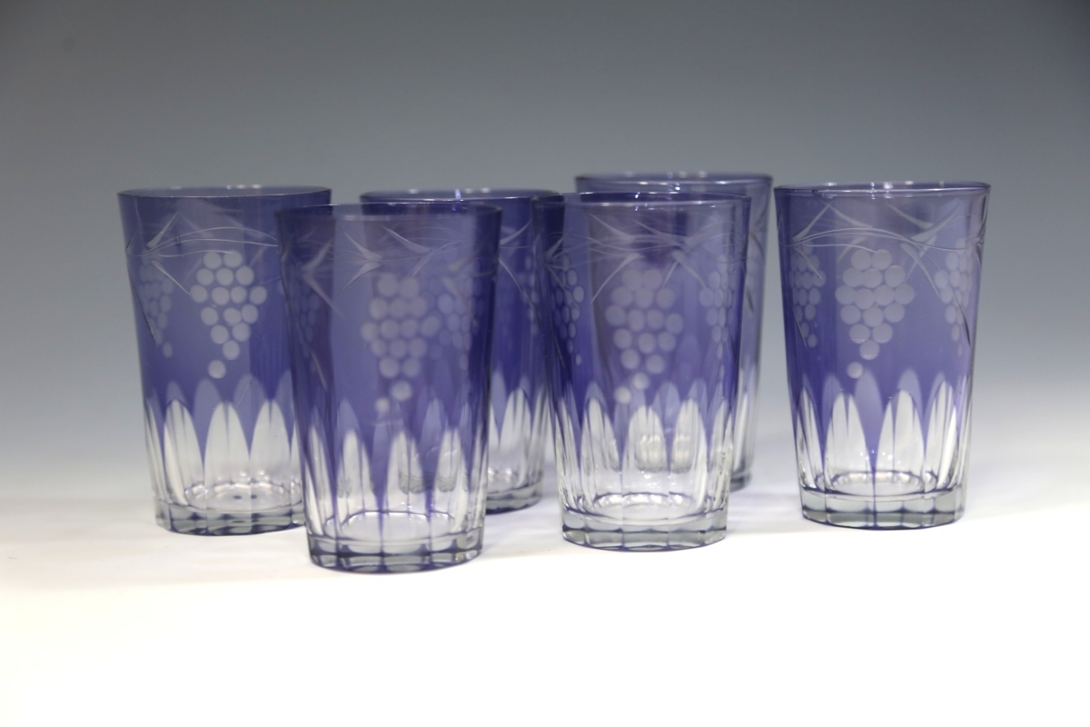 ★★★ 大正期 葡萄模様 カットガラス 切子ガラス 6客 ★★★