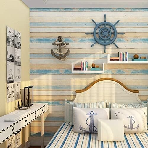 ☆新品☆Homya 壁紙シール 45cmx10m 木目 リメイクシート はがせる壁紙 接着剤不要 DIYシート 防水 防カビ ウォールステッカー 地中海風