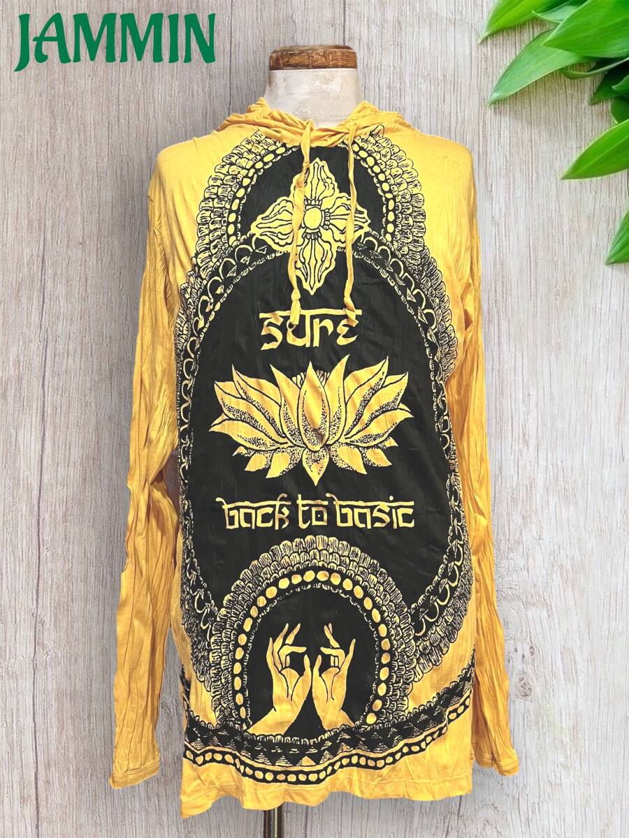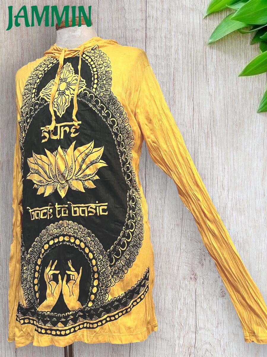 アジアン/エスニック/サイケ/ヒッピー/個性派/ロンT/長袖/Tシャツ/ロングスリーブTシャツ/フード付き/長袖/Lサイズ/