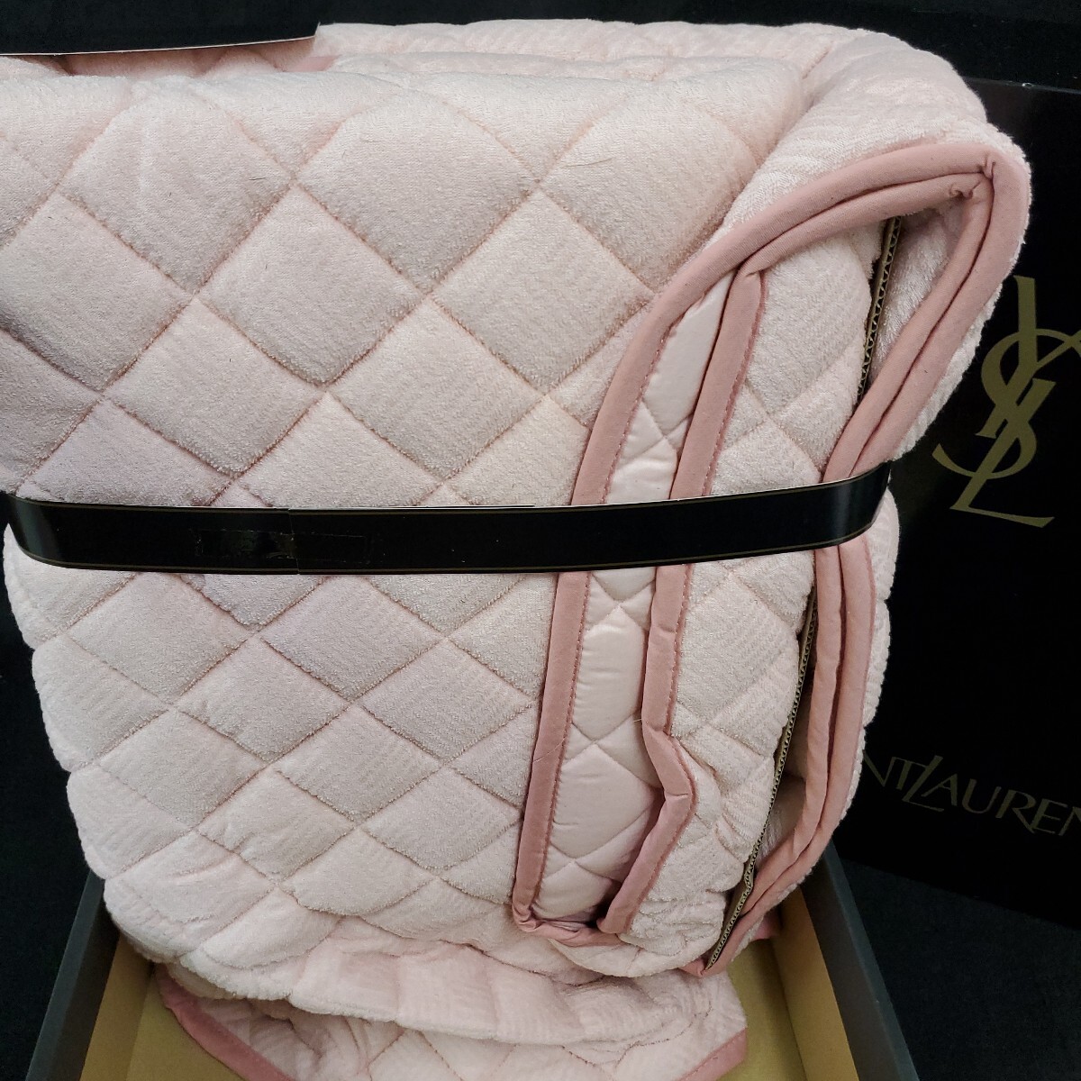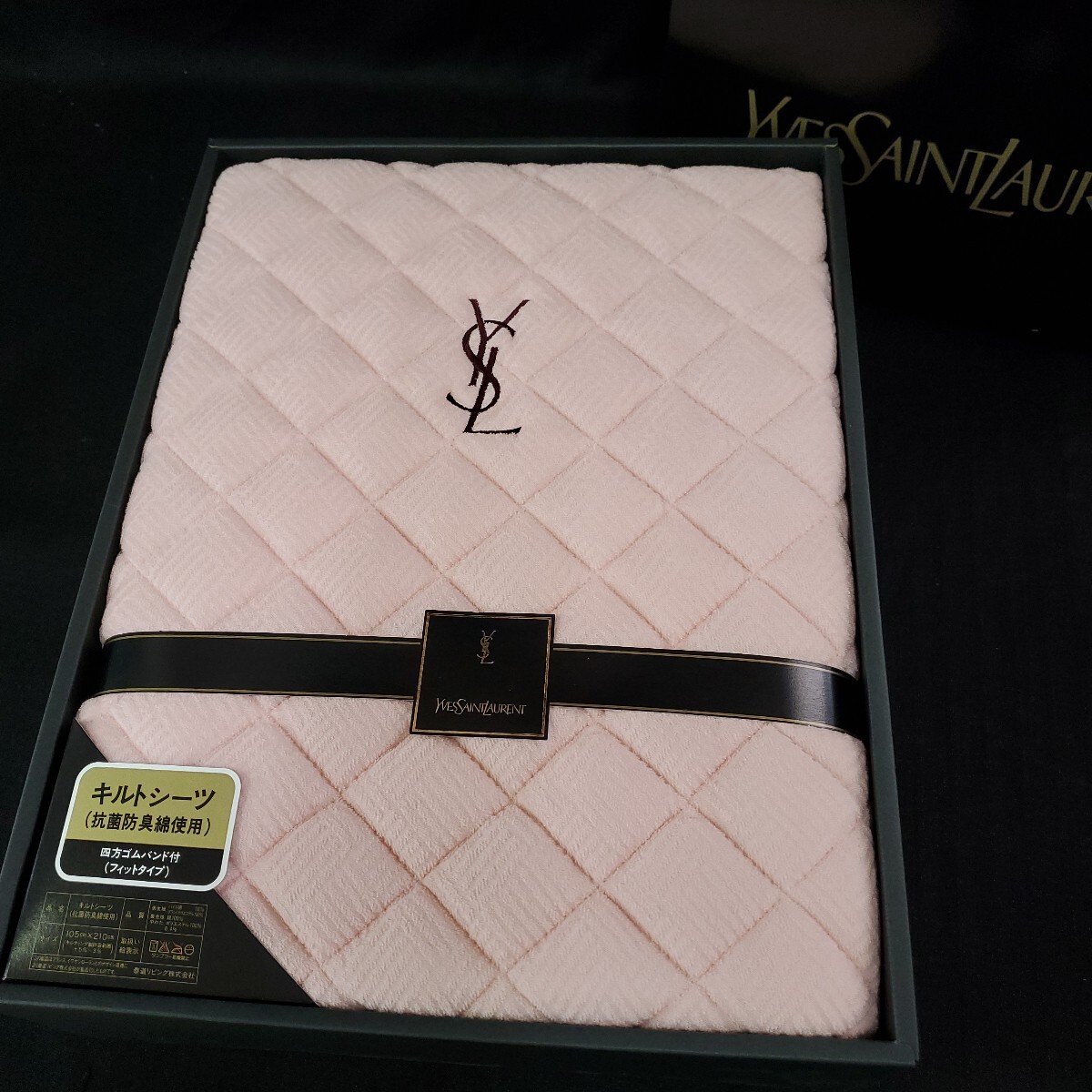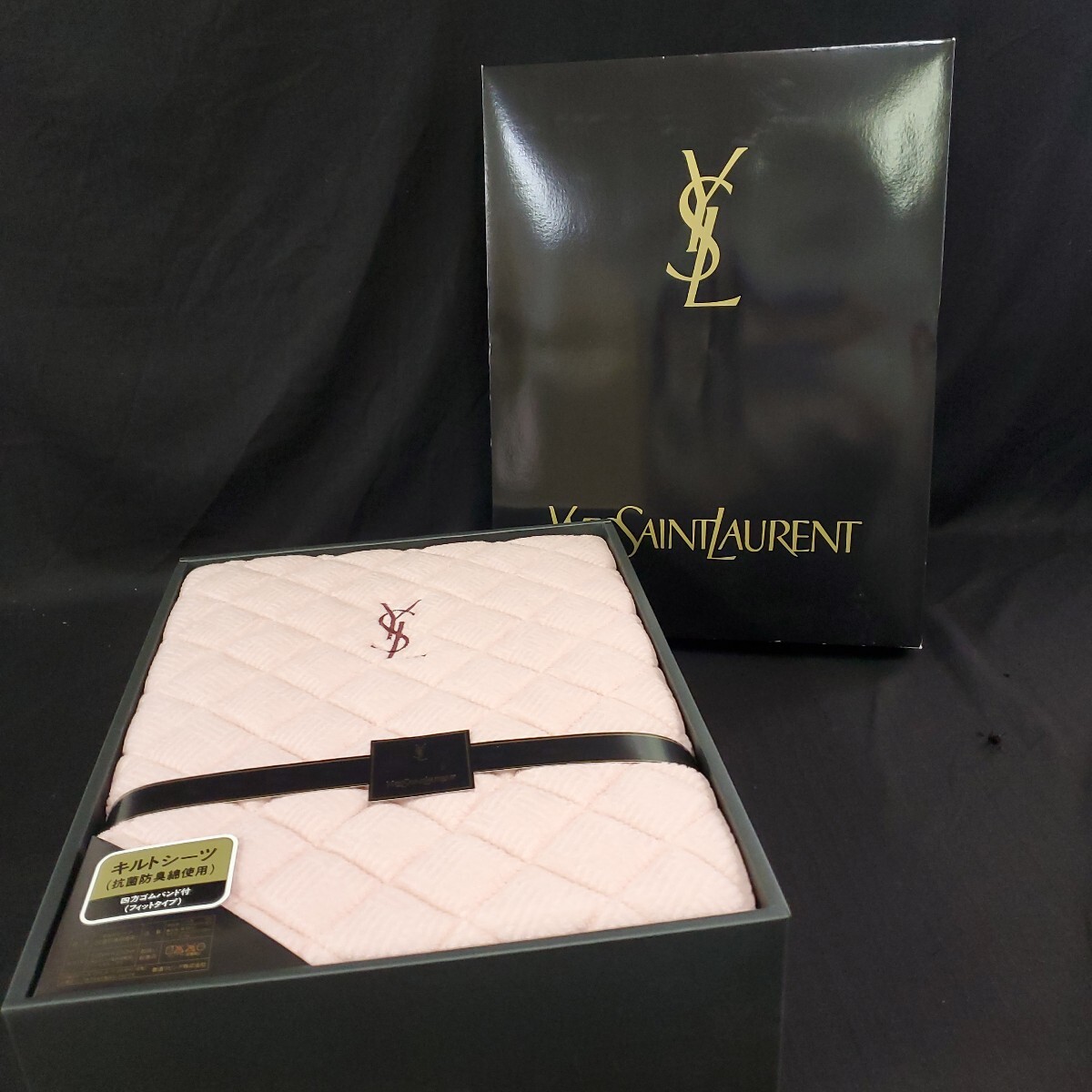 ★未使用保管品 イヴサンローラン キルトシーツ 105cm×210cm 敷きパッド 抗菌防臭綿使用 四方ゴムバンド付 ピンク 寝具 275-40