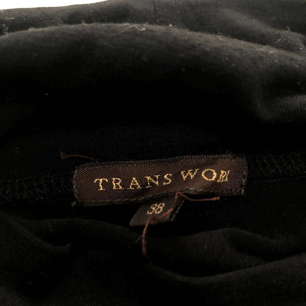 10NG006-42 TRANS WORK トランスワーク タートルネック トップス ハイネック タック 無地 長袖 レディース 38 M相当 ブラック 黒