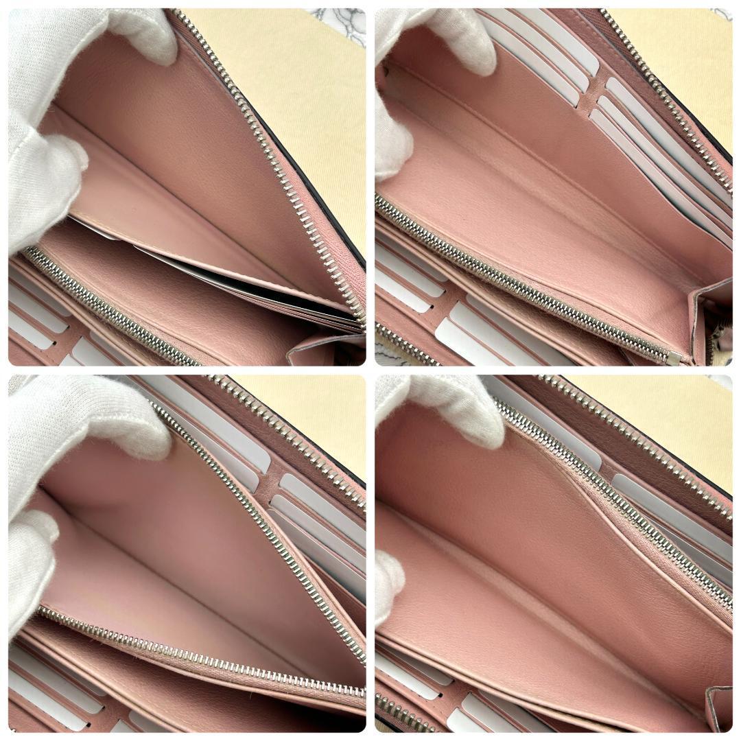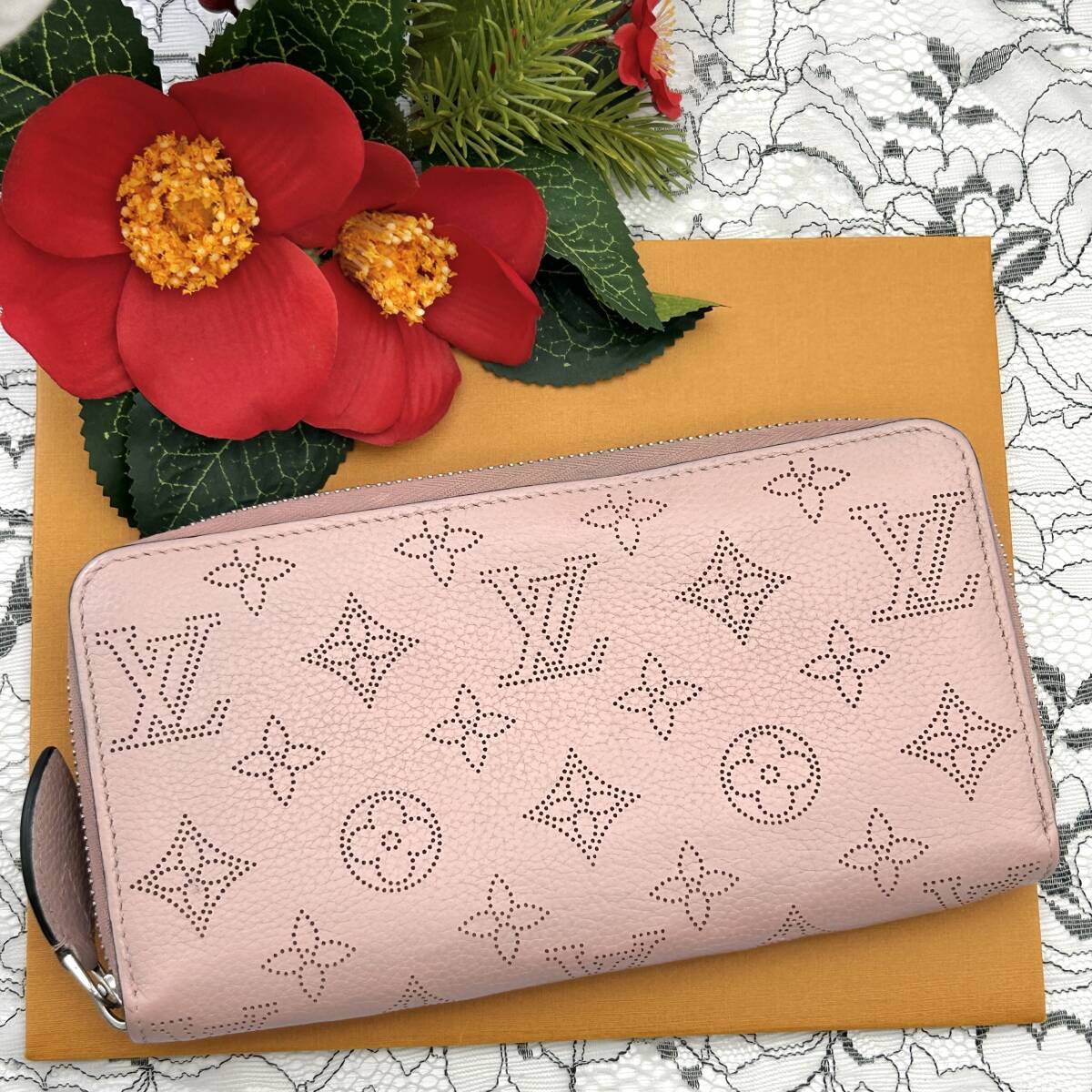 繊細なパンチングで描かれたモノグラムがお洒落なマヒナ ジッピーウォレットのお財布です!柔らかなマヒナレザーが手になじみ、可愛らしいピンクカラーで持っているだけで気分が上がります