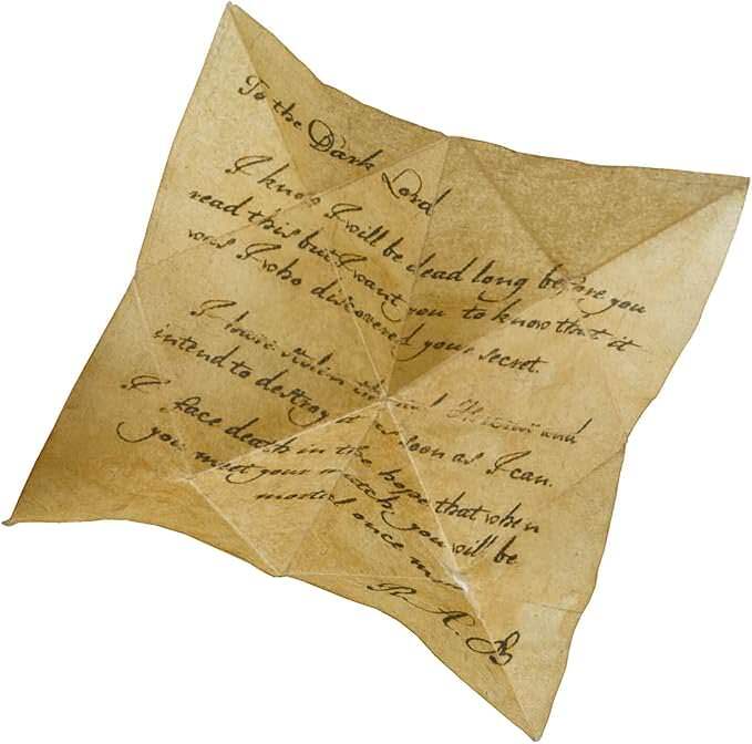 ロケットを開けると、中にはR.A.B.がヴォルデモート卿に宛てた手紙が収められています。