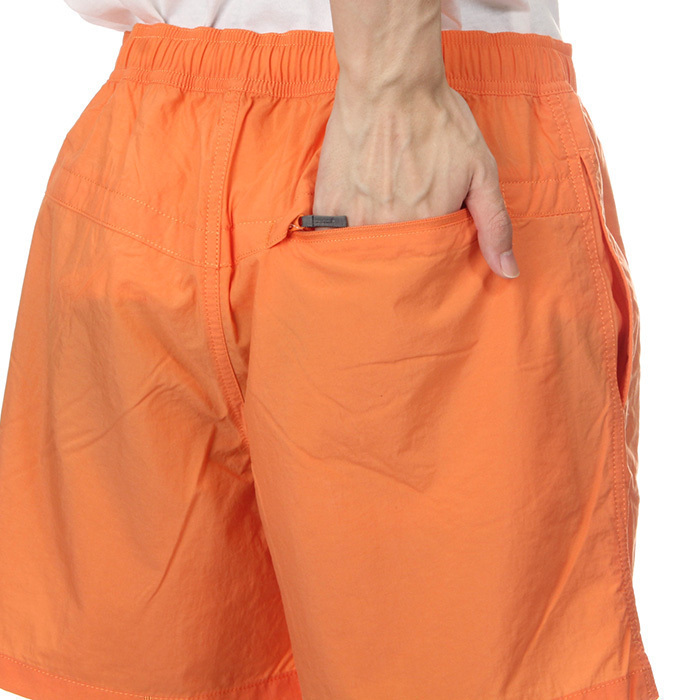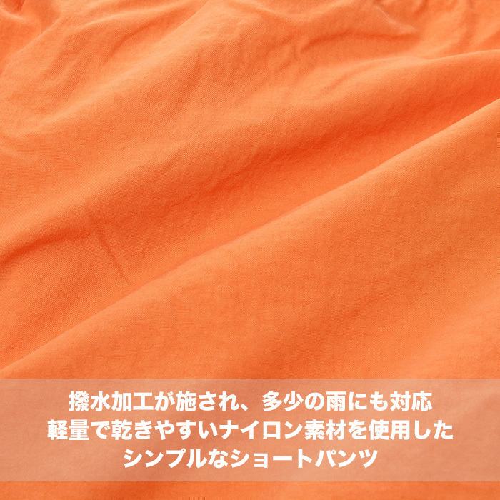 軽量で乾きやすいナイロン素材を使用した、シンプルなショートパンツ。