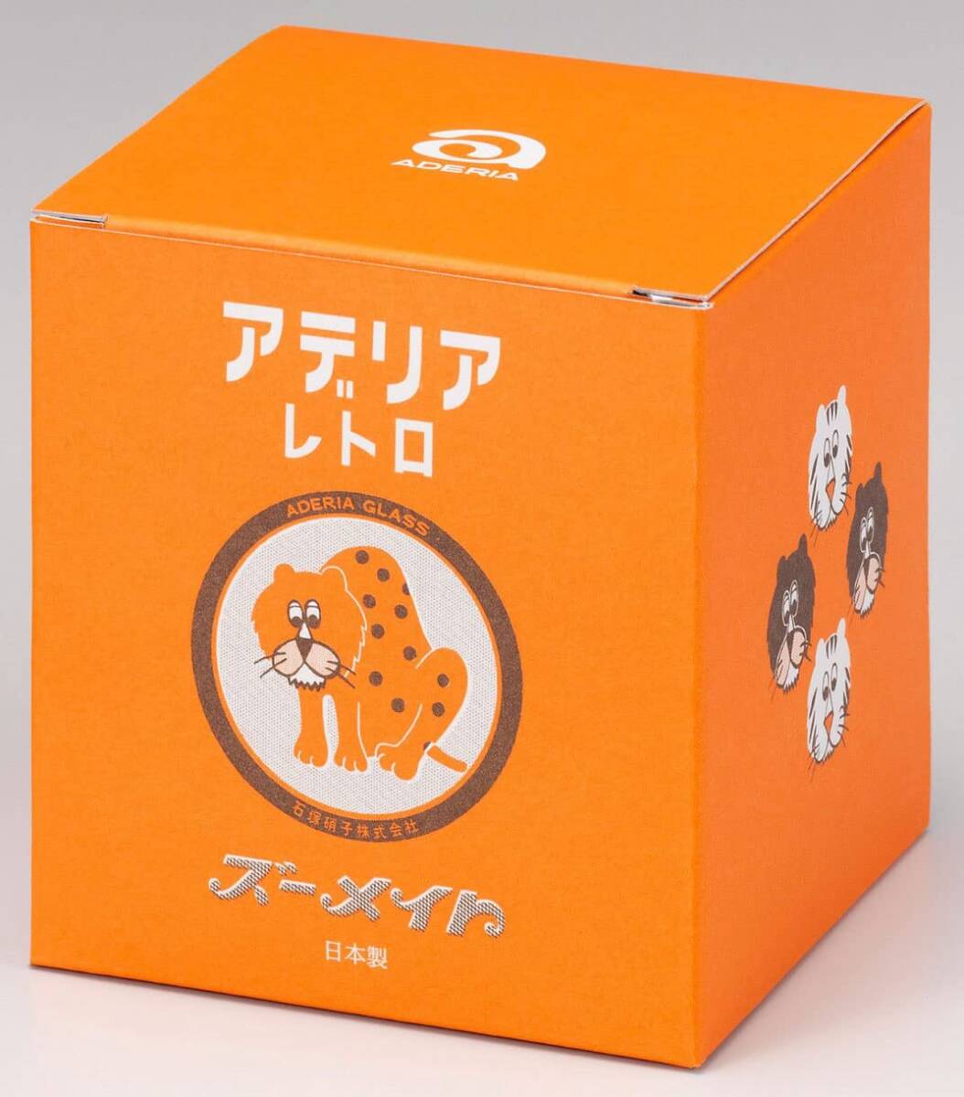 [アデリアレトロとは] 「アデリアレトロ」は、かつて昭和の家庭で使われていたアデリアのグラスウェアを、現在でも安心してお使い頂ける様にリメイクしたシリーズです。 アデリアの食器は親しみやすいデザインと手ごろな価格で広まり、昭和の食卓を飾りました。 その懐かしさと温かみある魅力に惹かれ、生産が終了した今でも当時のグラスや容器を大切に使い続けているお客様もいらっしゃいます。 そんな人々の声に後押しされアデリアレトロは誕生いたしました。 [ズーメイトシリーズとは] 昭和51年(1976年)に発売された動物柄のガラス食器です。 発売当初はお菓子を入れる容器として販売されていました。 花柄が主流の当時にあって珍しい動物柄のデザインです。 眠そうなヒョウとおとぼけ顔のトラがかわいらしいチャーミングな表情が特徴です。 [ボンボン入れ] 昭和の家庭で「ボンボン入れ」と呼ばれて親しまれていたガラスの卓上保存容器。 一口サイズのキャンディーやチョコレートを指す「ボンボン」を保管するためのガラス容器として開発・販売されていました。 もちろん、お菓子だけでなく、ステーショナリーグッズ、ヘアゴム、等小物を入れても可愛いガラスの保存容器です。 パッケージは、カラフルな色使いとグラスを連想させるデザイン。プレゼントやギフトにもお使い頂けます。 [サイズ]約最大径9.1(口径6.5)×高さ9.5cm [素材・材質]びん=ソーダガラス、蓋=ブリキ [生産国]日本