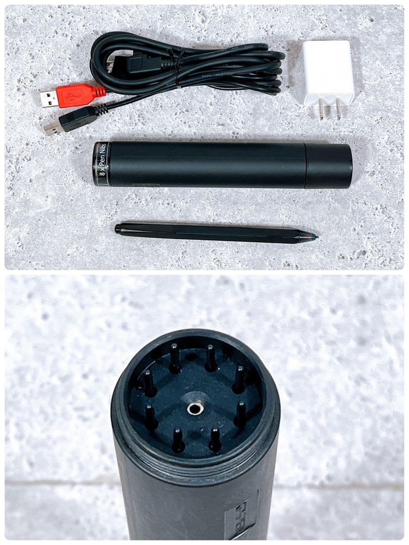 ペンケース、ペン、アダプター、替え芯8本、USBケーブル