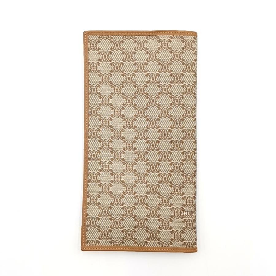 ・送料無料 超美品 セリーヌ CELINE 長財布 財布 二つ折り ロングウォレット マカダム柄 M08 伊製 イタリア製 ラベージュ系 レディース