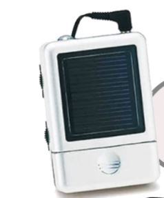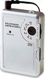 ソーラーパネルを装備したコンパクトなラジオ。