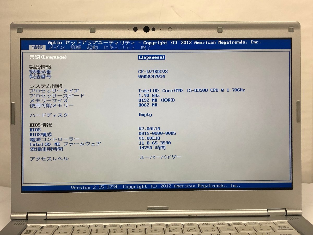 ジャンク/ Panasonic CF-LV7RDCVS Intel Core i5-8350U メモリ8.19GB ストレージ無し 【K22682】