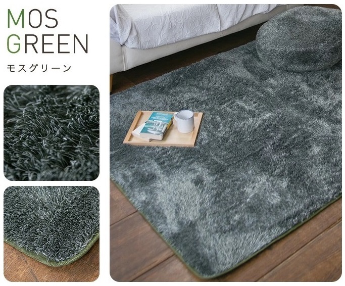霜降り風 ロングマイクロファイバー マーブルラグ 185x235cmモスグリーン