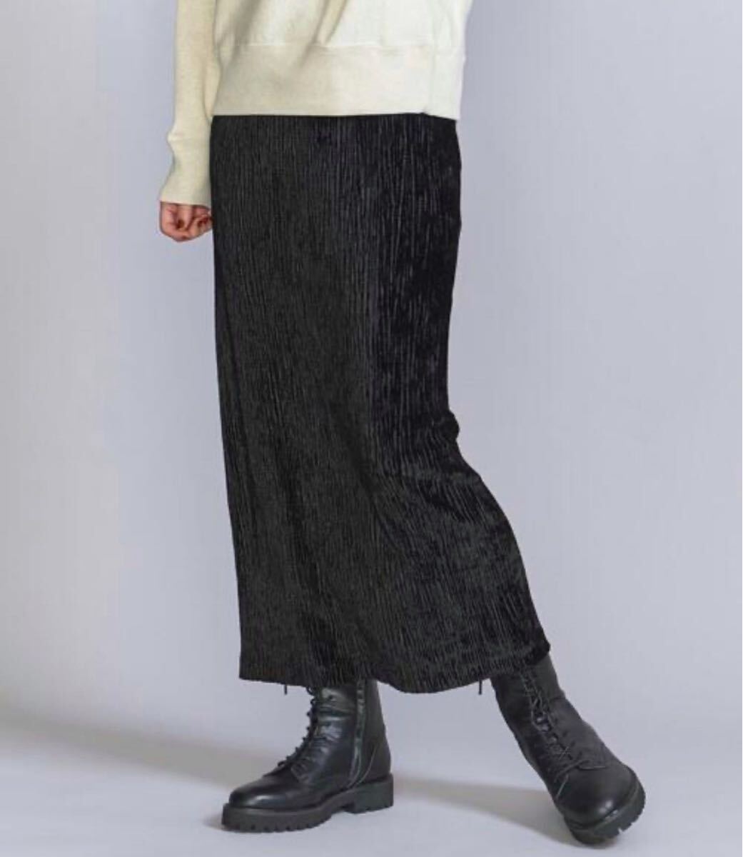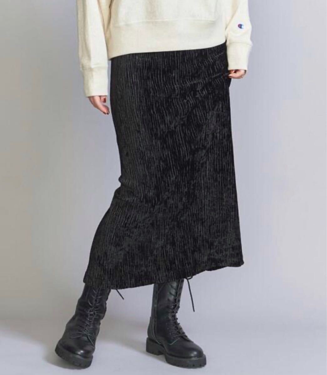 シーズンスタイルにぴったりなベロア素材を使用したタイトスカート。