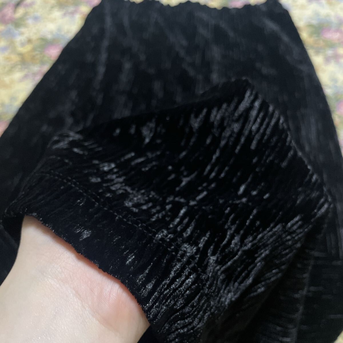 素材のシャイニー感が強い分、ベロアの重厚感などは一切なく、お洒落見えするアイテムです。