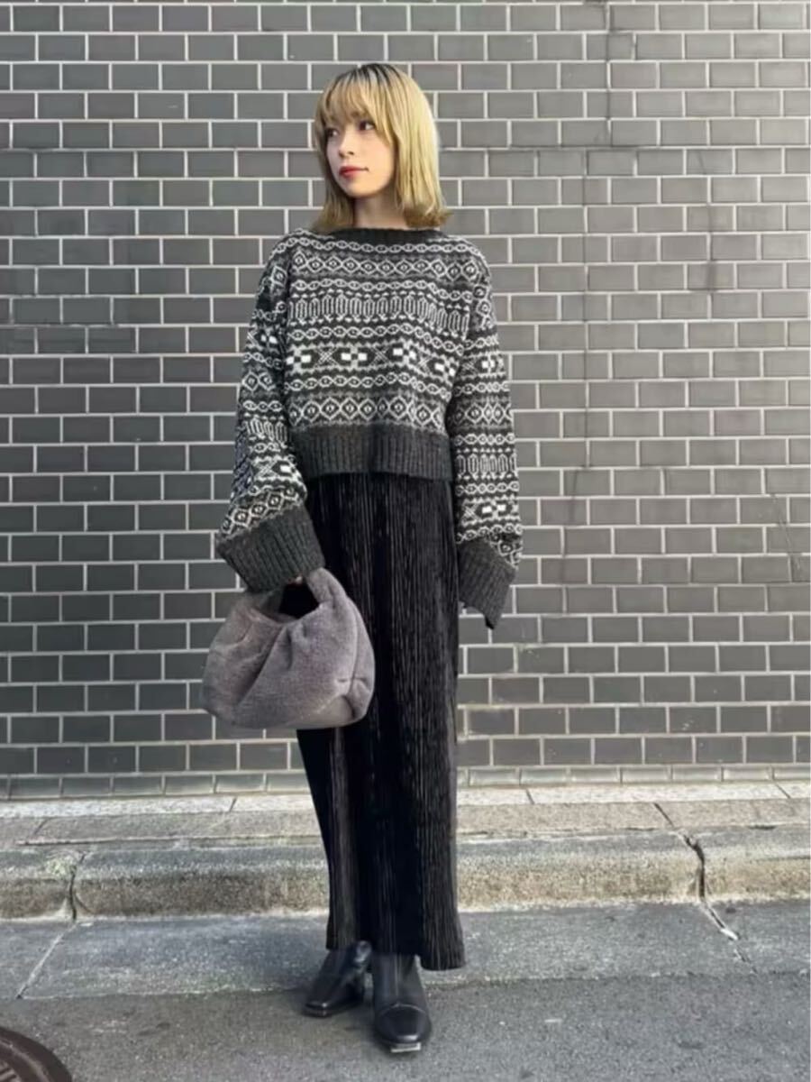 ウエストインのスマートな装いや、ゆったりめのニットを合わせたラフなスタイリングもおすすめ。