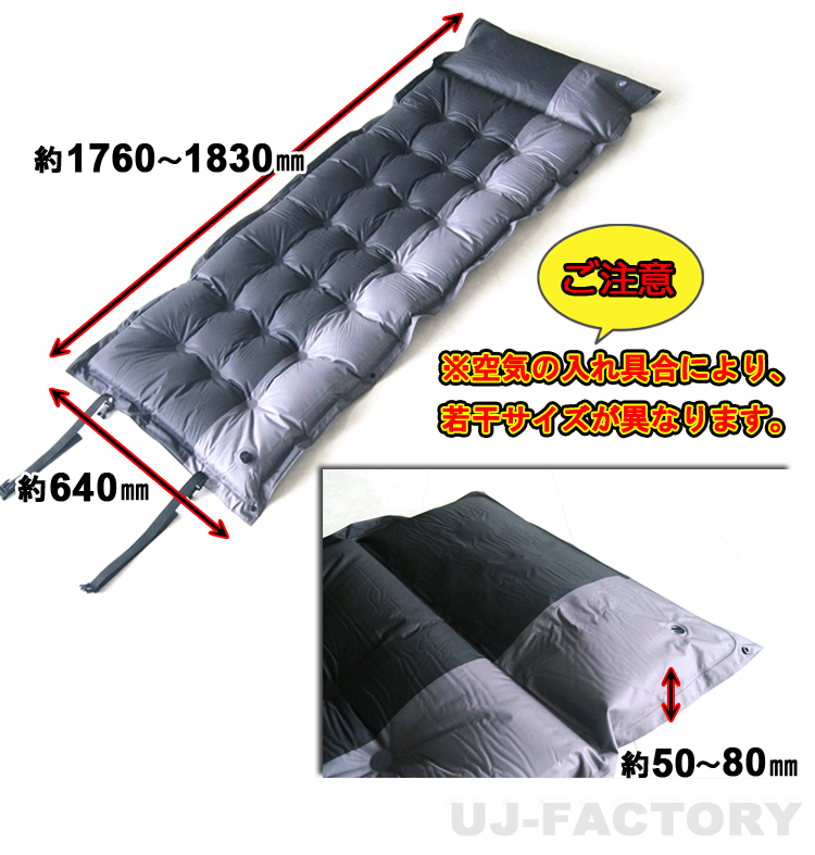 | ★ 自動膨張式・エアーマット ★ ♪ アウトドアライフを更に楽しく ♪ ★1830mm×640mm×50mm/連結可能で広々★ | |||||||||||||||||||||