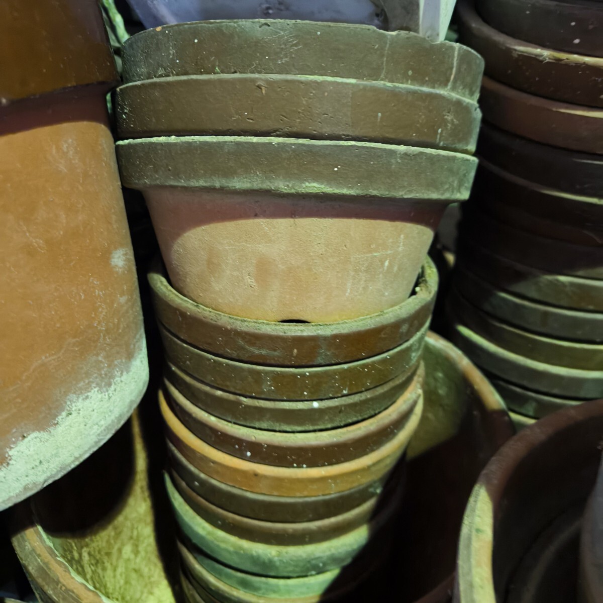 ◎直接引取限定【植木鉢 大量 まとめ売り】愛知県 陶器 素焼き 鉢 現状品 ガーデニング 園芸 石や土そのまま レトロ 盆栽鉢 276-63